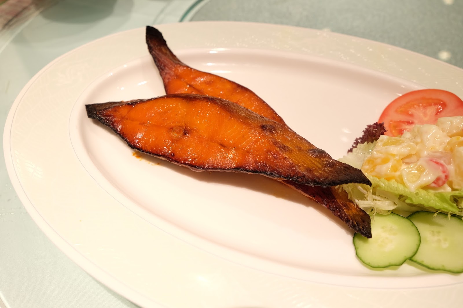 如果不是大鷹鯧,根本難以製作的一道菜,先用醬油醃一整晚,掃上牛油再燻焗,入口有少許結實,但配上沙律,令口感起了變化,而且充分展現出中西合璧的本地飲食文化,非常有趣。