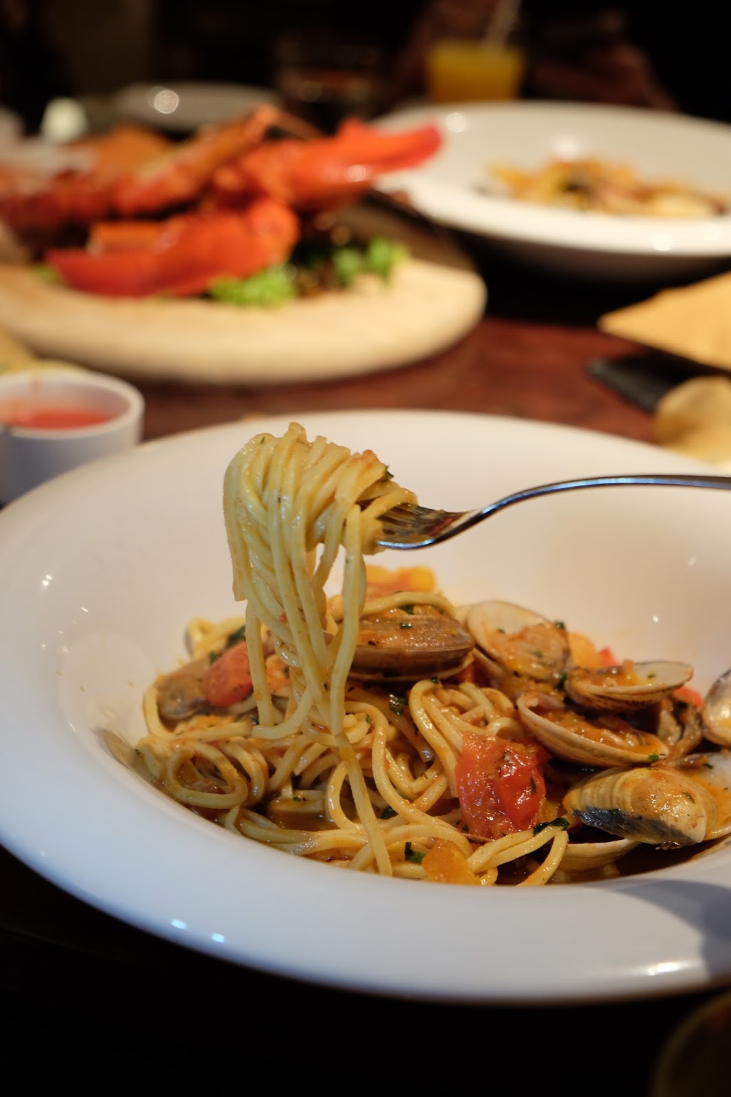 自家制意大利粉配炒蜆, 意大利蕃茄, 乾魚子
