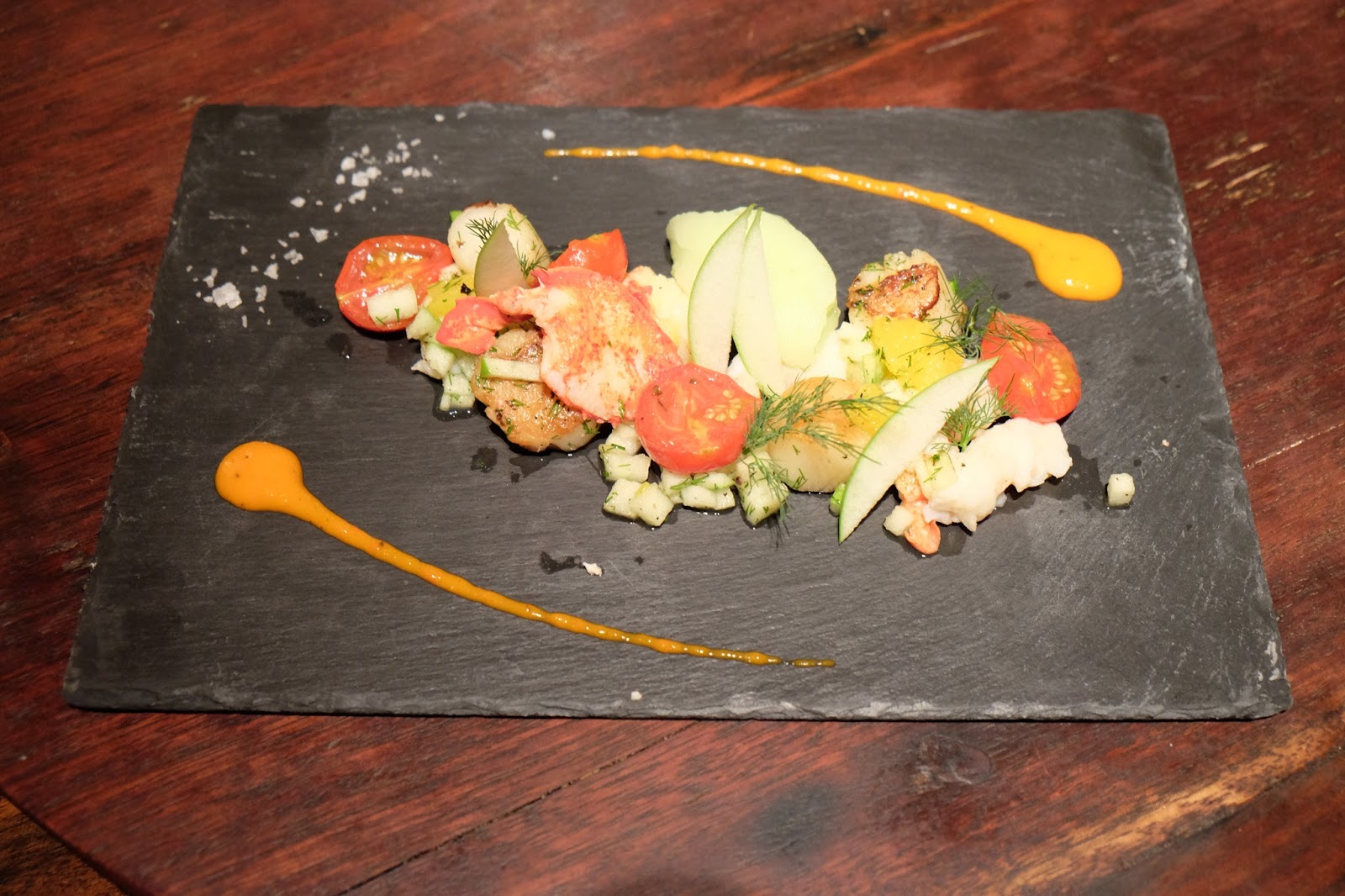 Cooked Lobster, Stir-fried Scallops, Green Apple Sorbet, Citrus Salad ($278)