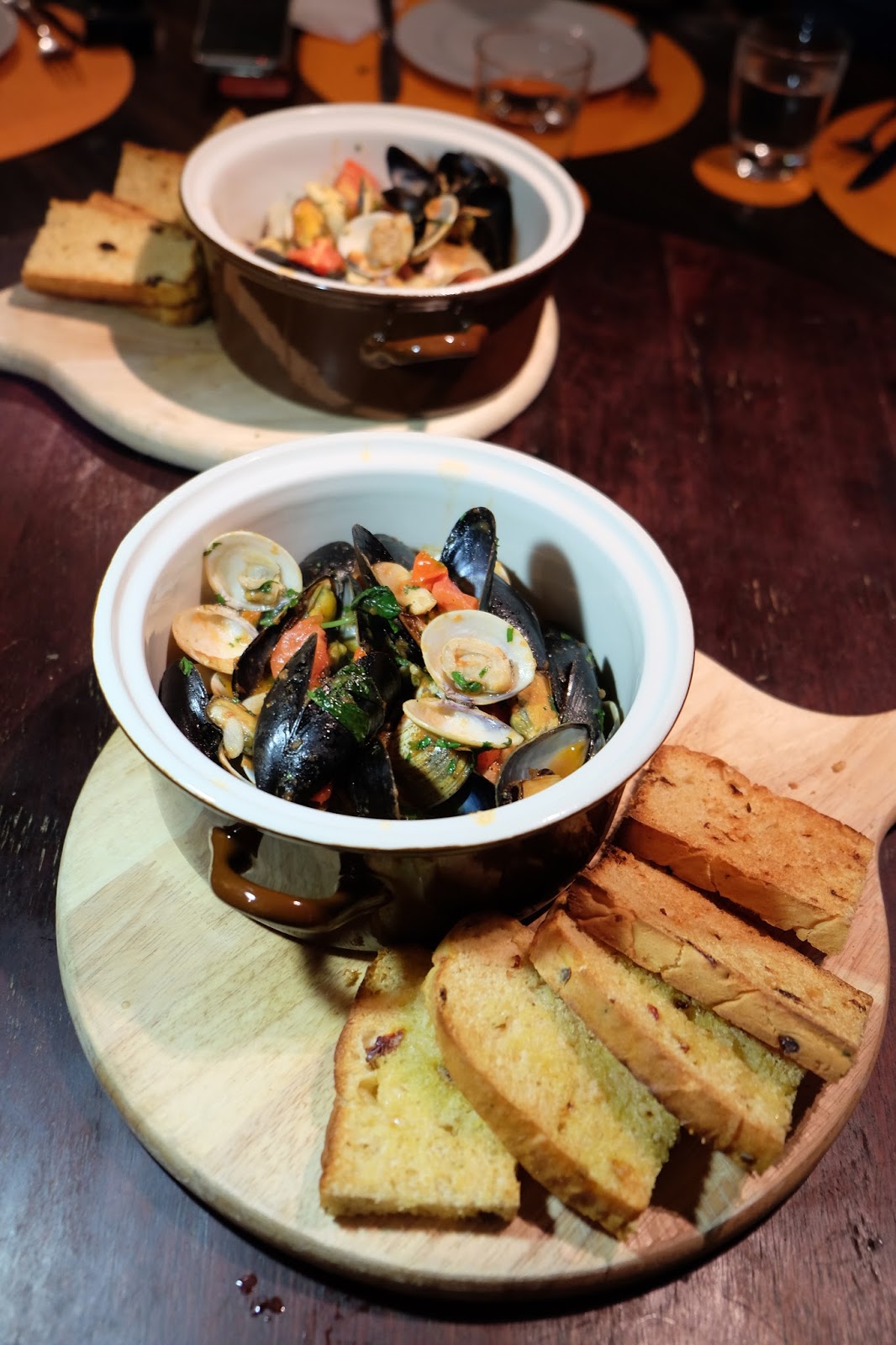 Clams And Mussels in Marinara Sauce, Garlic Bruschetta ($358)