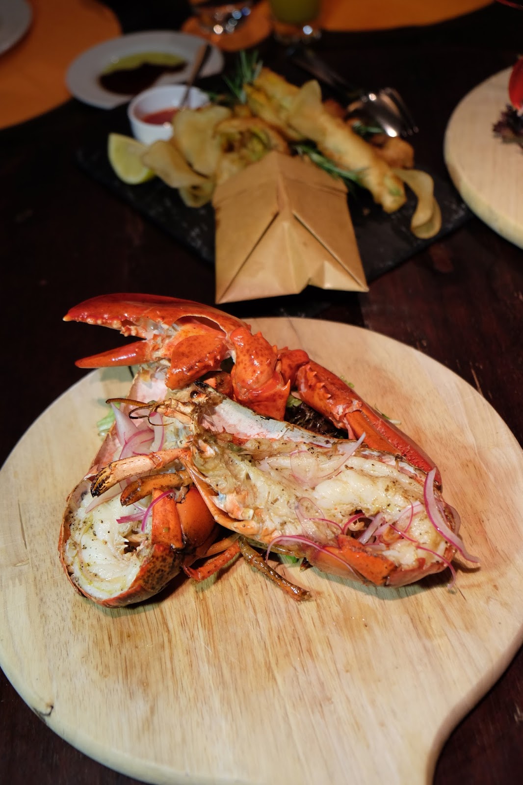 扒原隻波士頓龍蝦, 蕃茄紅洋蔥沙律, 辣椒檸檬汁