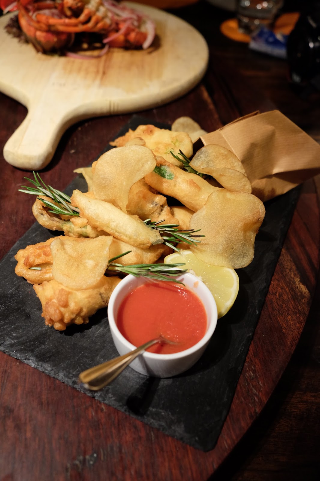Fried Oyster And Blue Mussels in Ferrari Batter, Zucchina Flower ($208)