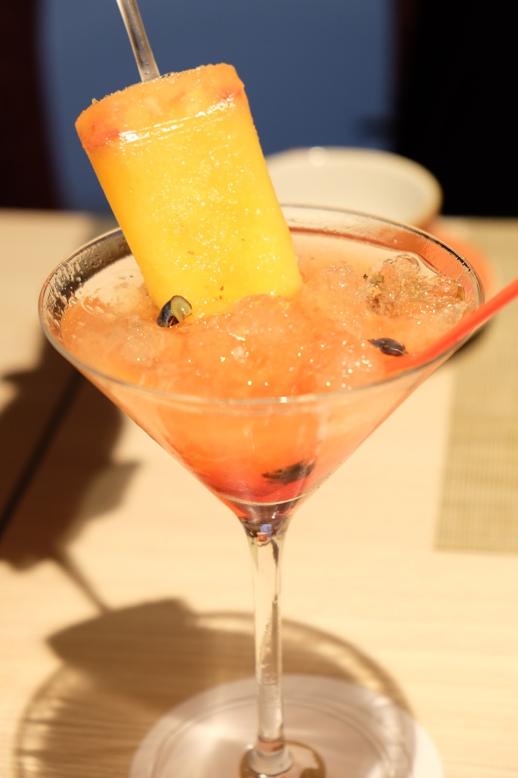 是Sparkling Wine 與冰條的組合,似乎較適合男士,畢竟酒精度會較高,但在炎夏中來一杯,又幾清涼透心。