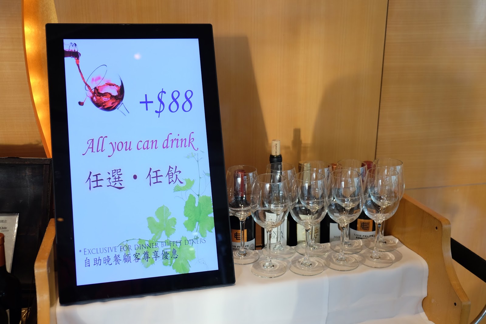 如果愛喝幾杯的朋友,亦可選擇紅、白酒任飲,只須加 $88,小朋友就有橙汁、蘋果汁及西柚汁任添,夠方便。