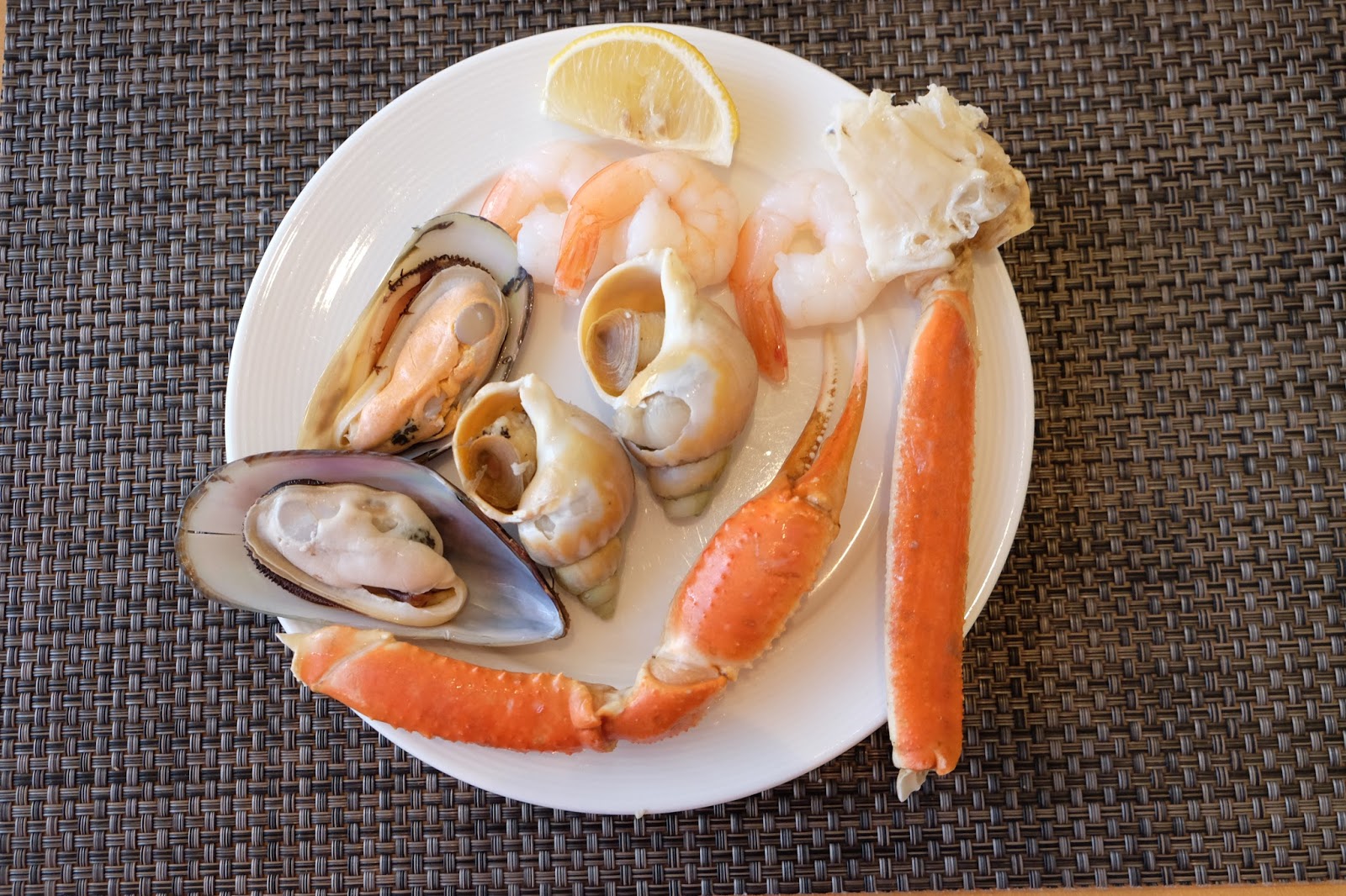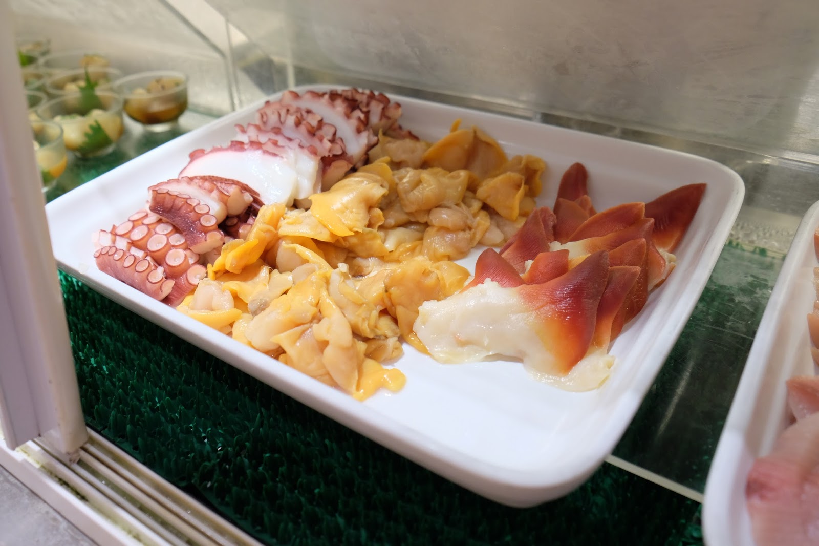 有北寄貝、八爪魚、赤貝、三文魚及甜蝦,品種上比起一般buffet中見到的還要多,各自取了一些,質素不錯,倒是吃了一round又一round。