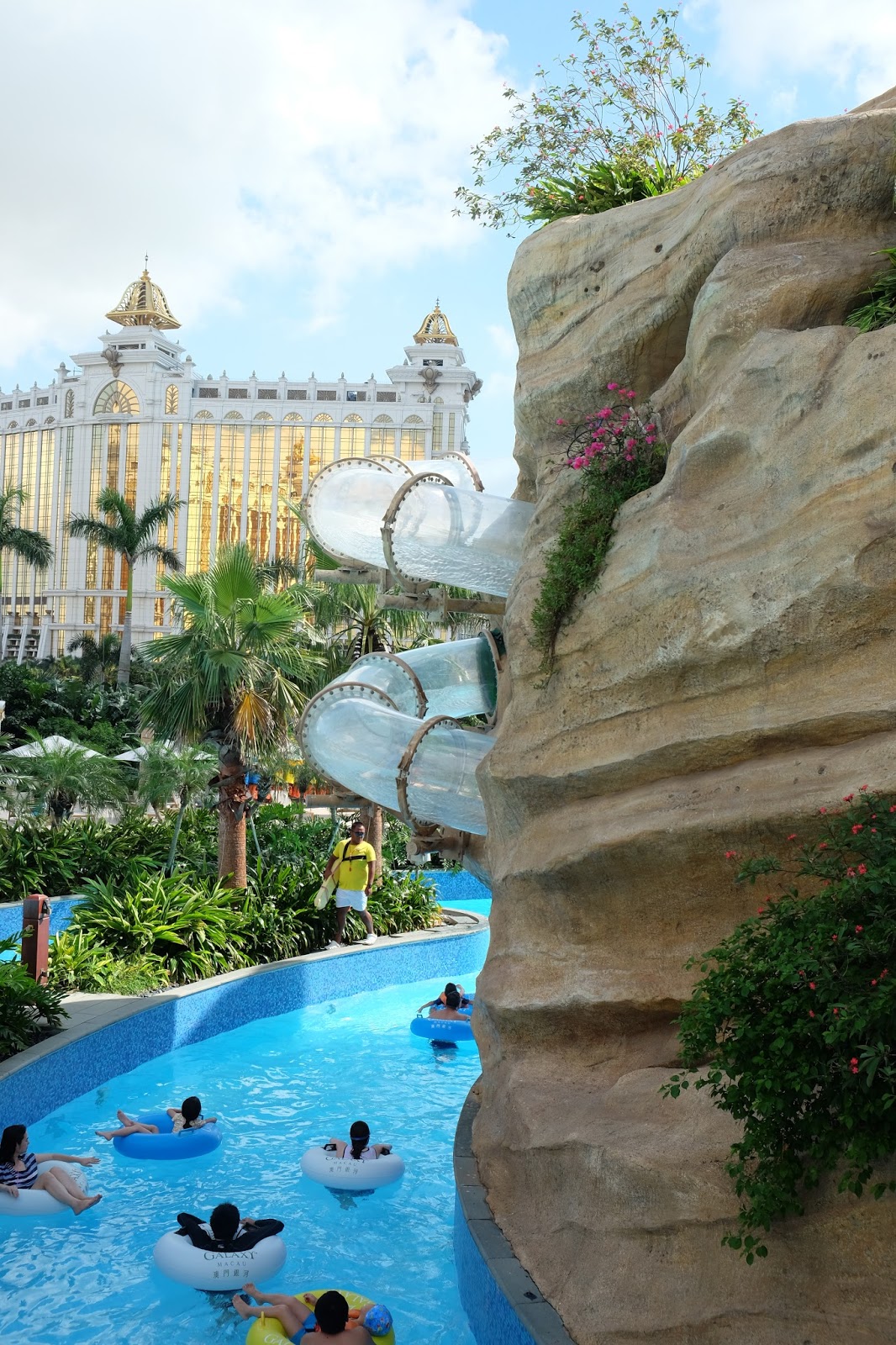 最適合一家人玩的,莫過於「全球最長空中激流」 ,酒店在不同的下水位置,擺放了大量的救生衣及水泡,供不同年齡的客人任意使用。