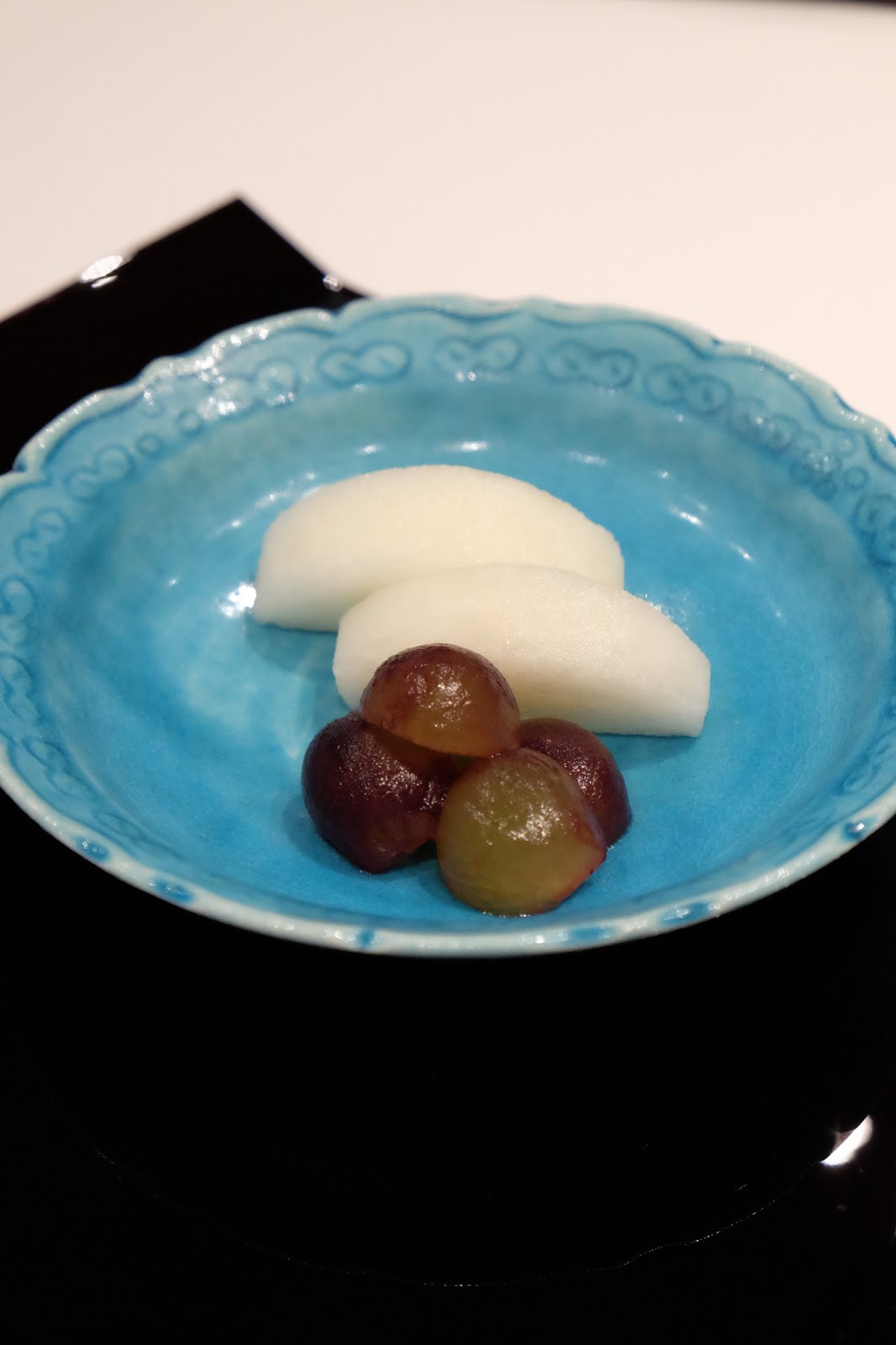 畢竟是午膳,水果當然亦有所不同,分別是山梨縣的梨及提子。很欣賞水果已為人客去皮及切件,非常方便,提子的甜度,聽說是達到日本標準的13級,認真的程度,的確令人佩服。