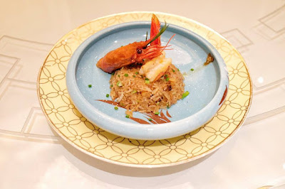 從賣相睇是毫不起眼,但從第一口開始已停不了,原來飯粒先用紅蝦湯煮熟,然後加入蝦乾、瑤柱及冬菇粒,落鑊炒至乾水,最後再煎香,難怪飯粒既乾身,粒顆分明,又香口,簡單的就如一碗炒飯也落足心機,榮獲米芝蓮兩星的確有道理。
