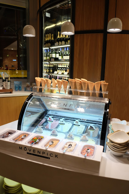 在整個甜品吧,足以令甜品迷瘋狂,先是八款Movenpick雪糕,有瑞士朱古力雪糕、法式焦糖燉蛋雪糕、意大利芝士蛋糕雪糕、熱情果香芒雪糕、雲尼拿籽雪糕、意大利奶凍雪糕、士多啤梨雪糕以及青檸檸檬雪葩,又是一個絕佳的賣點,客人更可任意加上topping,單是在雪糕位走一轉,足以回了三份一本。
