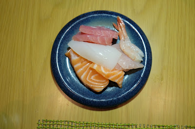 有三文魚、鱲魚、吞拿魚、八爪魚及甜蝦,解凍的處理都相當好,令肉質可以保持彈性,而壽司雖然是即製的,但還要留肚,只好放棄。