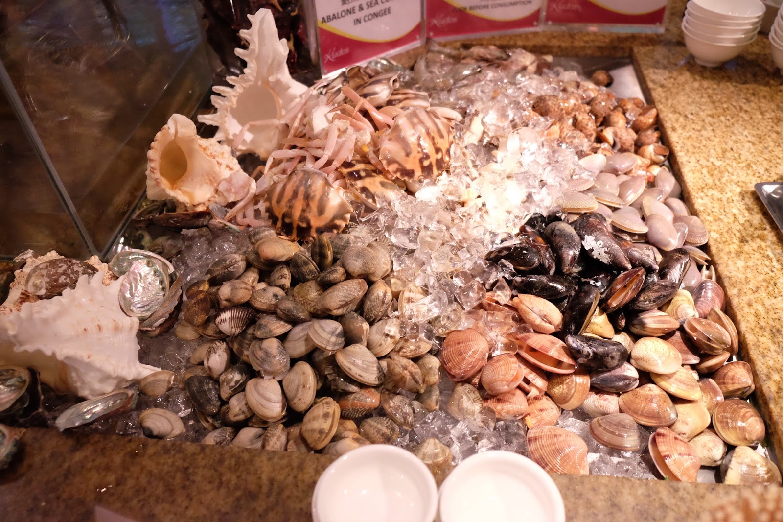 其實基本的海鮮陣容亦不可忽視,有超爆膏既麵包蟹、肉質鮮甜既蟹腳、柔韌又富螺味既翡翠螺,仲有凍蝦、青口及紅龍蝦仔,全都是解凍處理得相當好,沒有討厭的雪味或冰水,令人食得安心,不怕細菌的滋生。