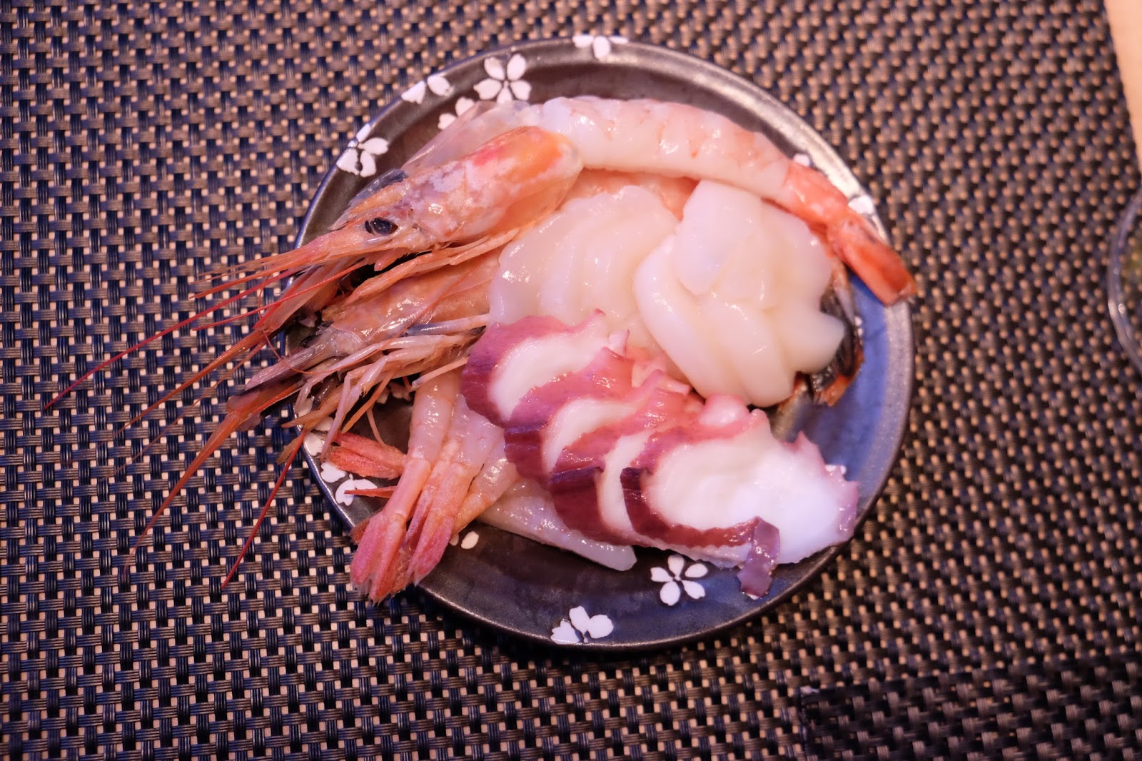 實在吃不了太多。只簡單的取了甜蝦、帶子及八爪魚,當中甜蝦及帶子肉質嫩滑,比起日式料理店的出品不遑多讓。