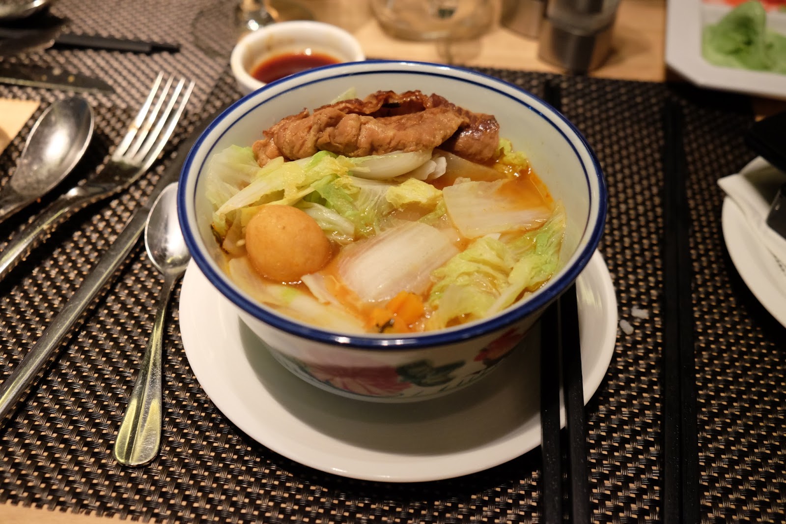 只選了炸豬扒及蒜泥白肉,前者炸得外層鬆化,而內裡有嚼口;而後者滿有蒜香,五花腩亦夠薄,但似乎欠了一陣辛勁。