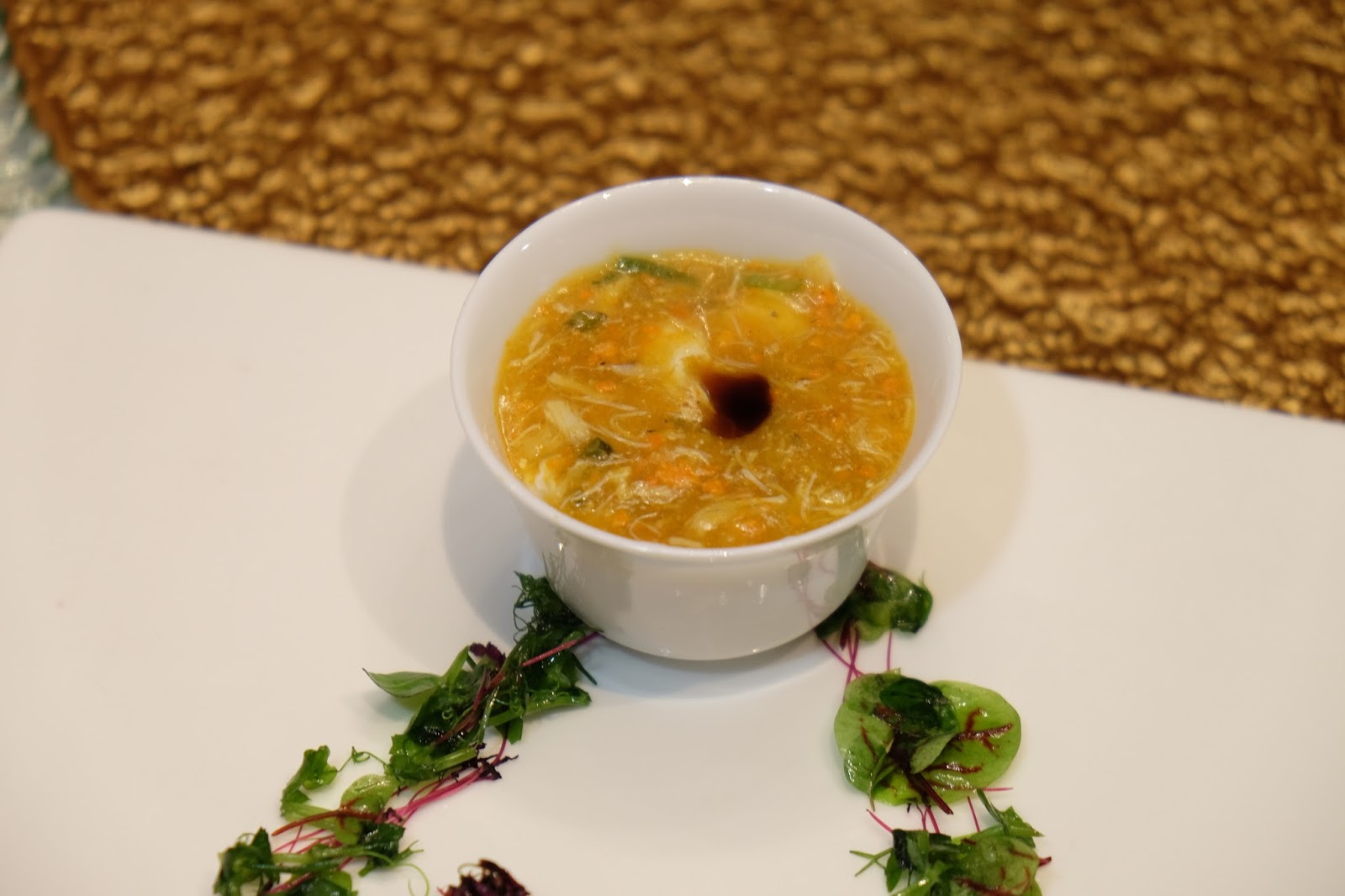 將蝦膠緊緊包裹了蘆筍,再澆上濃稠的蟹粉,蝦肉彈牙配以蟹粉的鮮香,中間蘆筍的爽甜,屠次分明,但又非常合拍。