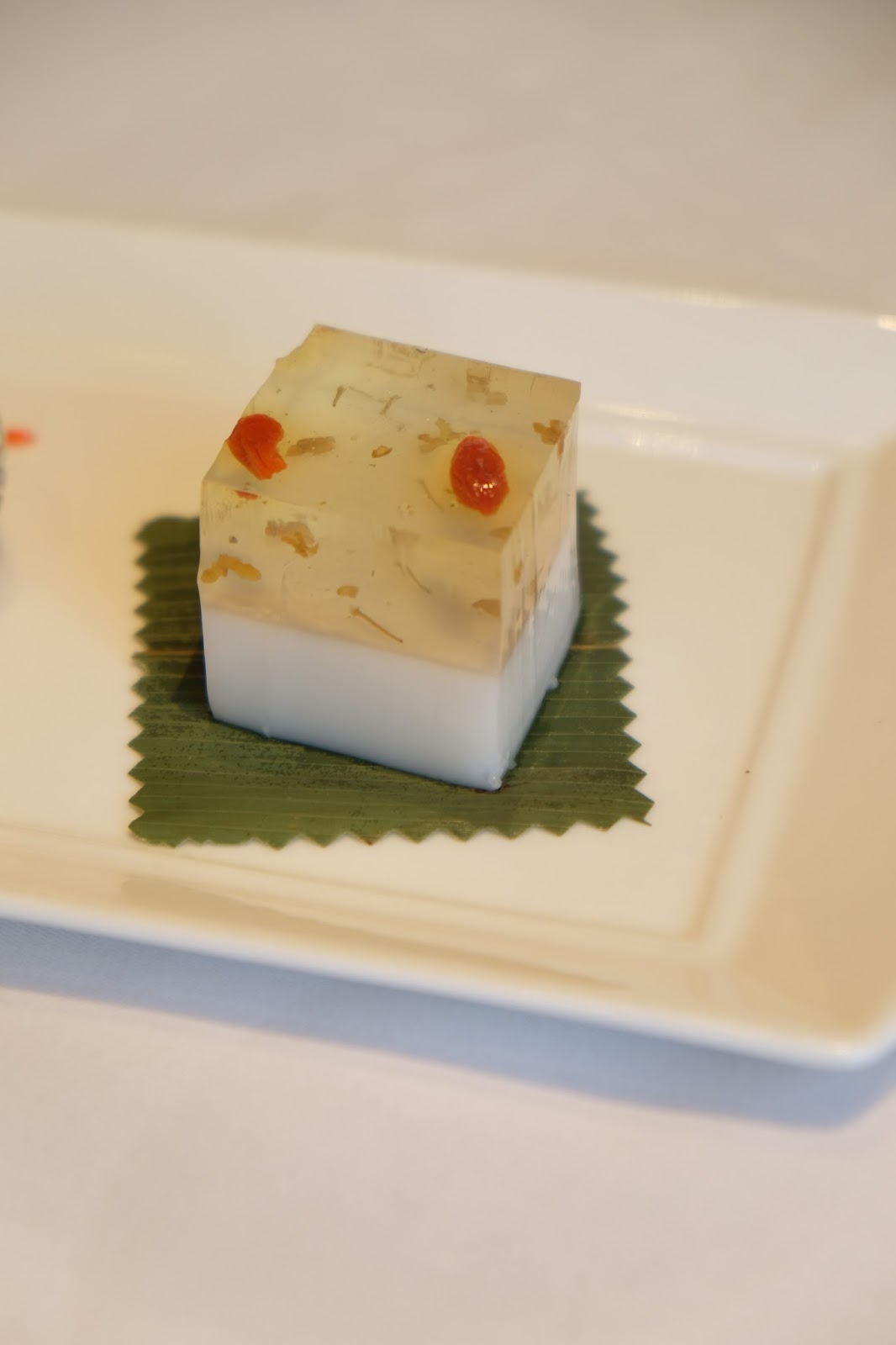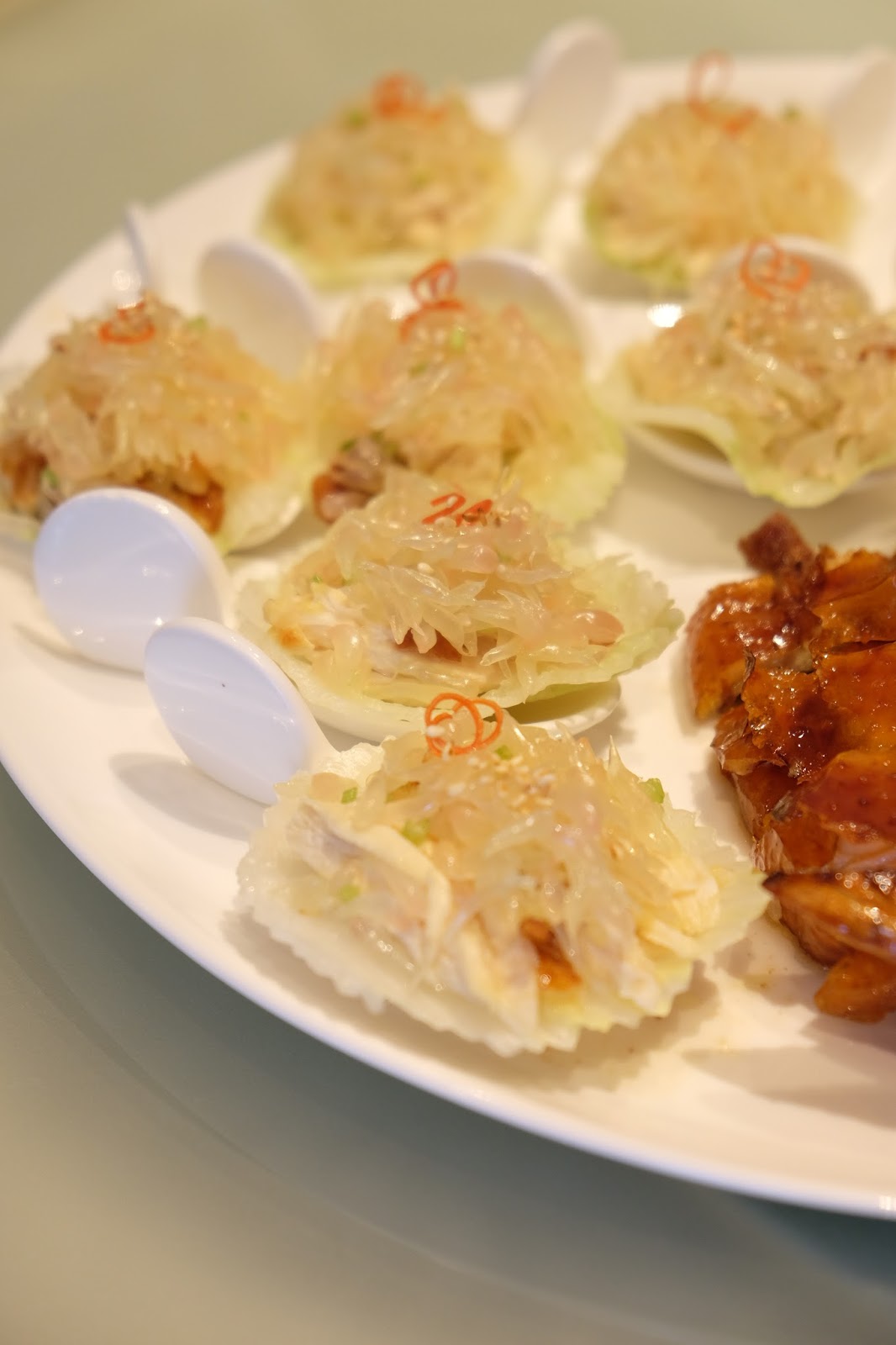 最啱懶人的菜色,柚子拆肉乾淨,放在湯匙上,剛好一口吃完,炸子雞「上皮」的過程處理得夠時間,皮下脂肪只得薄薄的一層,入口卜卜脆,雞肉又不覺老,配上柚子的清香,難怪最受在座的女士歡迎。