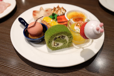 另外在甜品吧有綠茶黑豆芝士卷、綠茶黑豆啫喱、百利酒芝士朱古力杯、Tiramisu、雜莓蛋白杏仁餅、芒果泡芙條、梅子果凍、香蕉朱古力餅、法式燉蛋及栗子撻,款式不儘相同,但身體有點不適,只試了綠茶黑豆芝士卷,甘香甜美,下次來要吃個夠本。