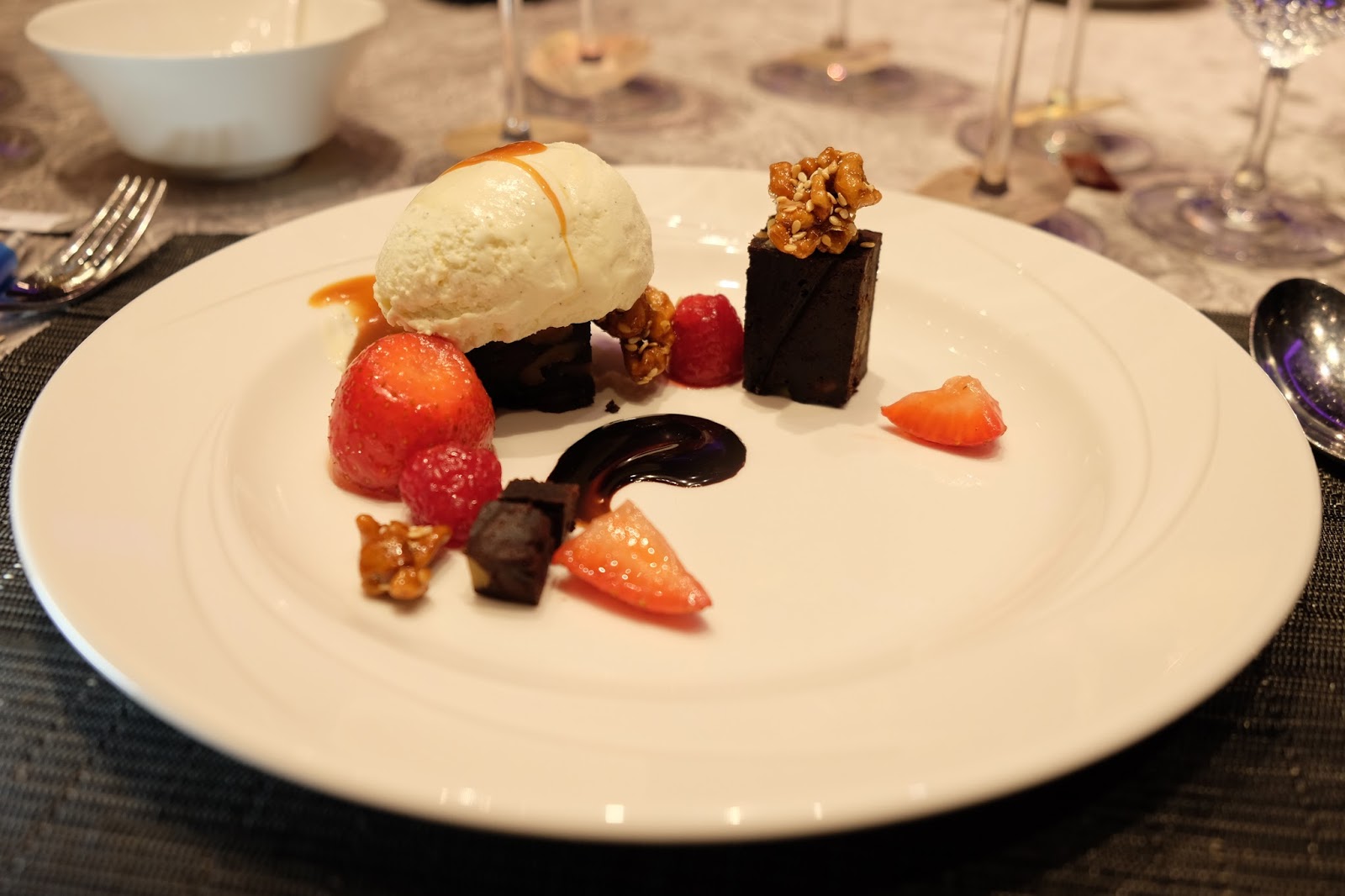 特濃合桃朱古力蛋糕配香草雪糕伴焦糖醬