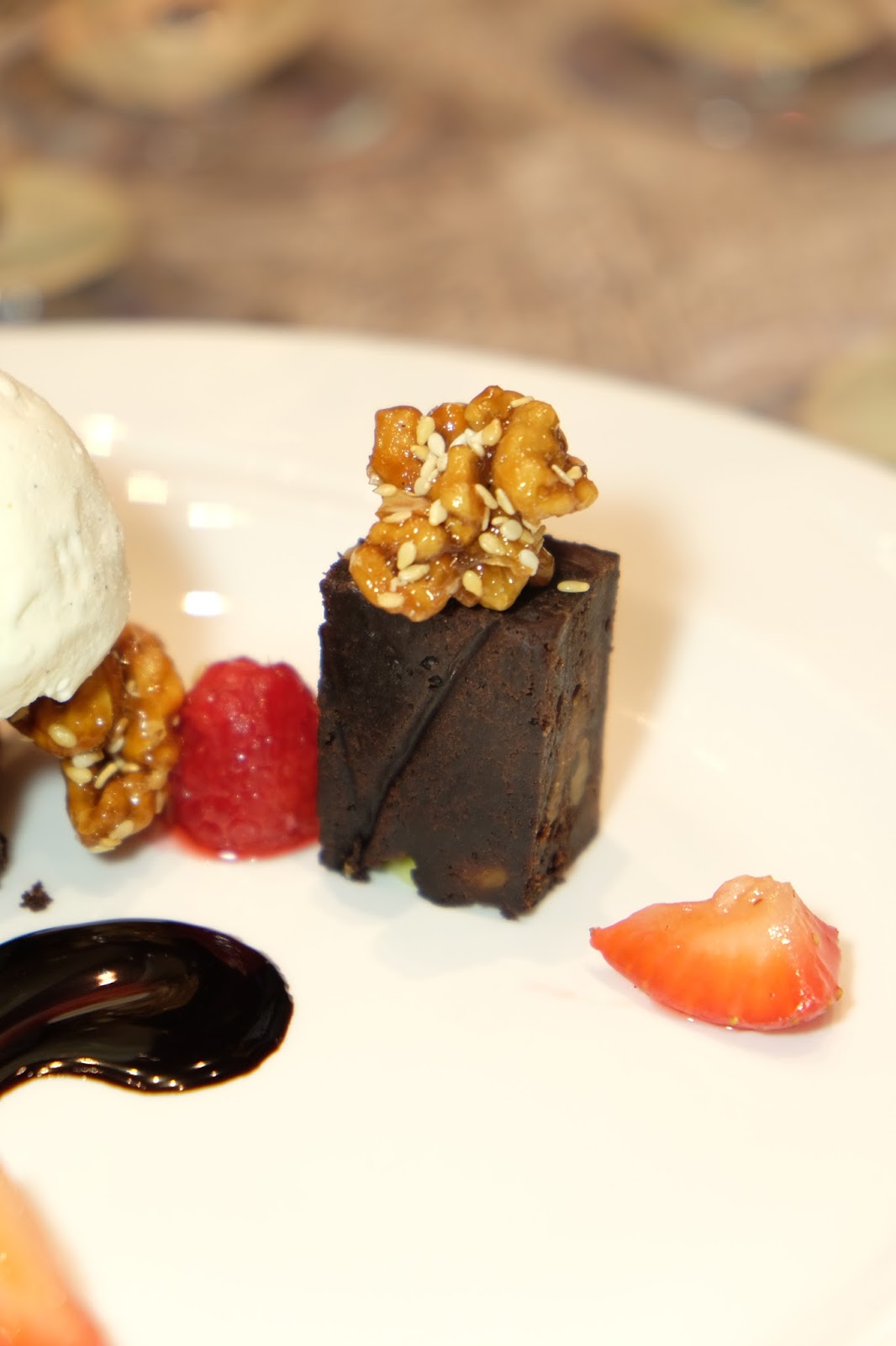 特濃合桃朱古力蛋糕配香草雪糕伴焦糖醬