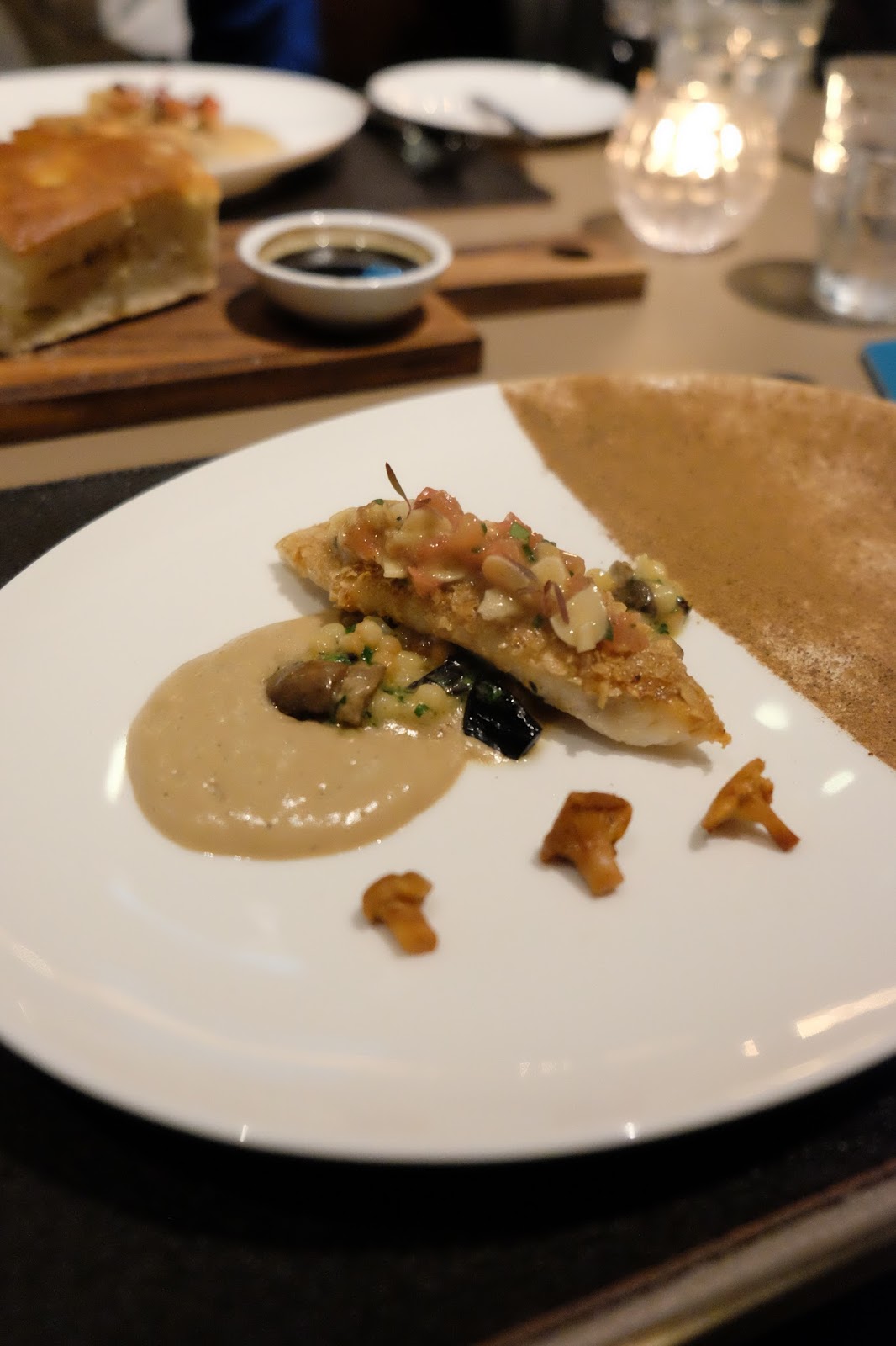 鯛魚吃過不知多少次,但用燕麥作配搭,令人聯想起麥皮蝦,形成外脆內軟的質感,加上野菌、fregola與及杏仁片,伴以濃稠的牛油咖啡汁,味道非常獨特。