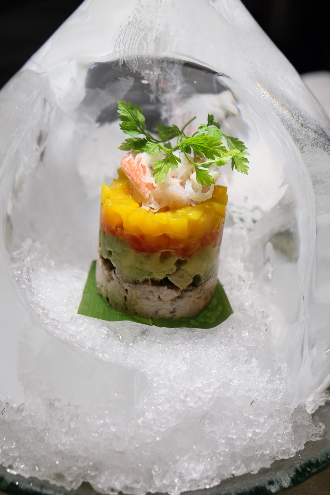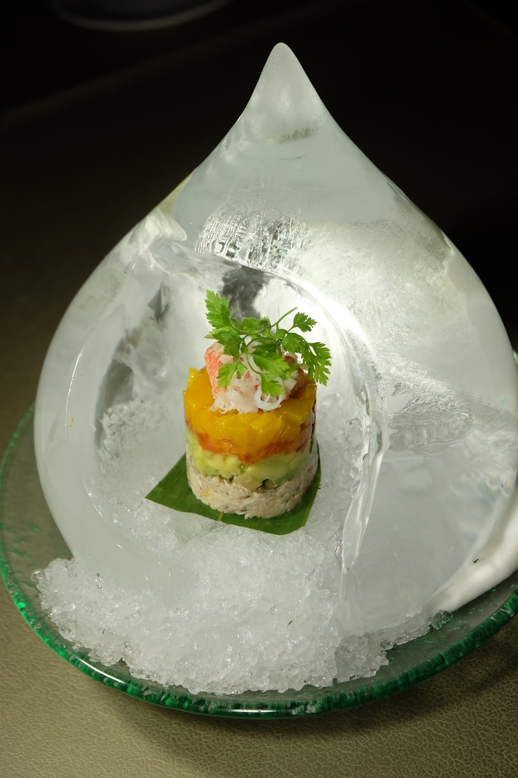 賣相絕對無得輸,由下而上是阿拉斯加蟹肉、藍蟹肉、牛油果及新鮮芒果,放在冰滴形的中空冰雕內,吃起來的不單有蟹肉的鮮甜,又有芒果的甜美,口感極佳,難怪是店方名物。