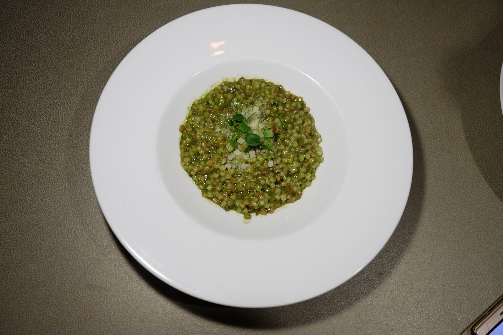 青幽幽的,望落毫不顯眼,呷一口,creamy得來芳香馥郁,原來是加入了鯷魚及蔬菜,再下點黑胡椒,就更加可口。