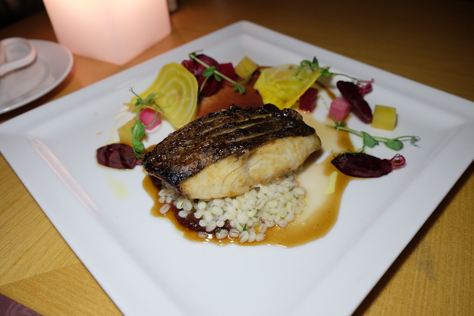 500g Grilled U.S Black Angus Rib-eye或者300g “Coca-Cola” Glazed Black Cod Fillet,兩款中選了黑鱈魚,魚皮煎得香脆,而魚肉帶少許油質,口感幼滑,火喉控制得不錯,墊底的紅菜頭蓉很清甜,與可樂汁非常合襯,加上珍珠洋薏米,此刻真的飽了。