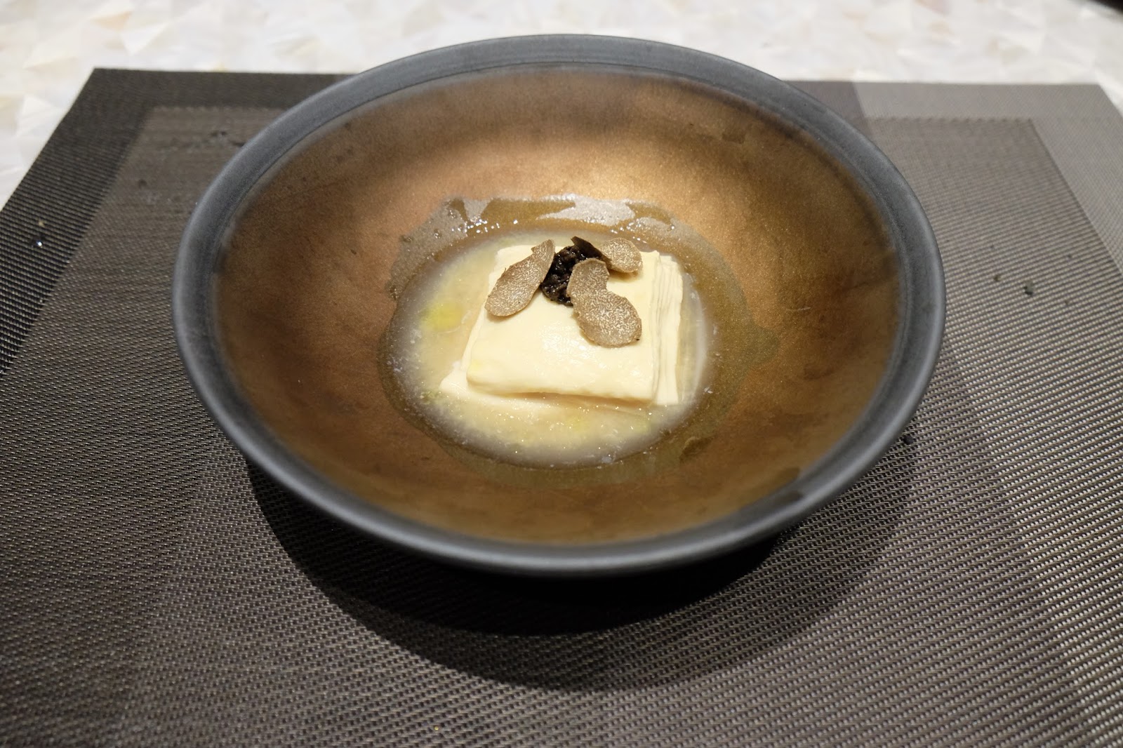 誠意度爆燈,用大阪豆乳自家製腐皮作層層叠,在層與層之間加入松露醬與及黑松露片,瀰漫著天然的幽香,在舌尖徘徊的感覺令人回味。