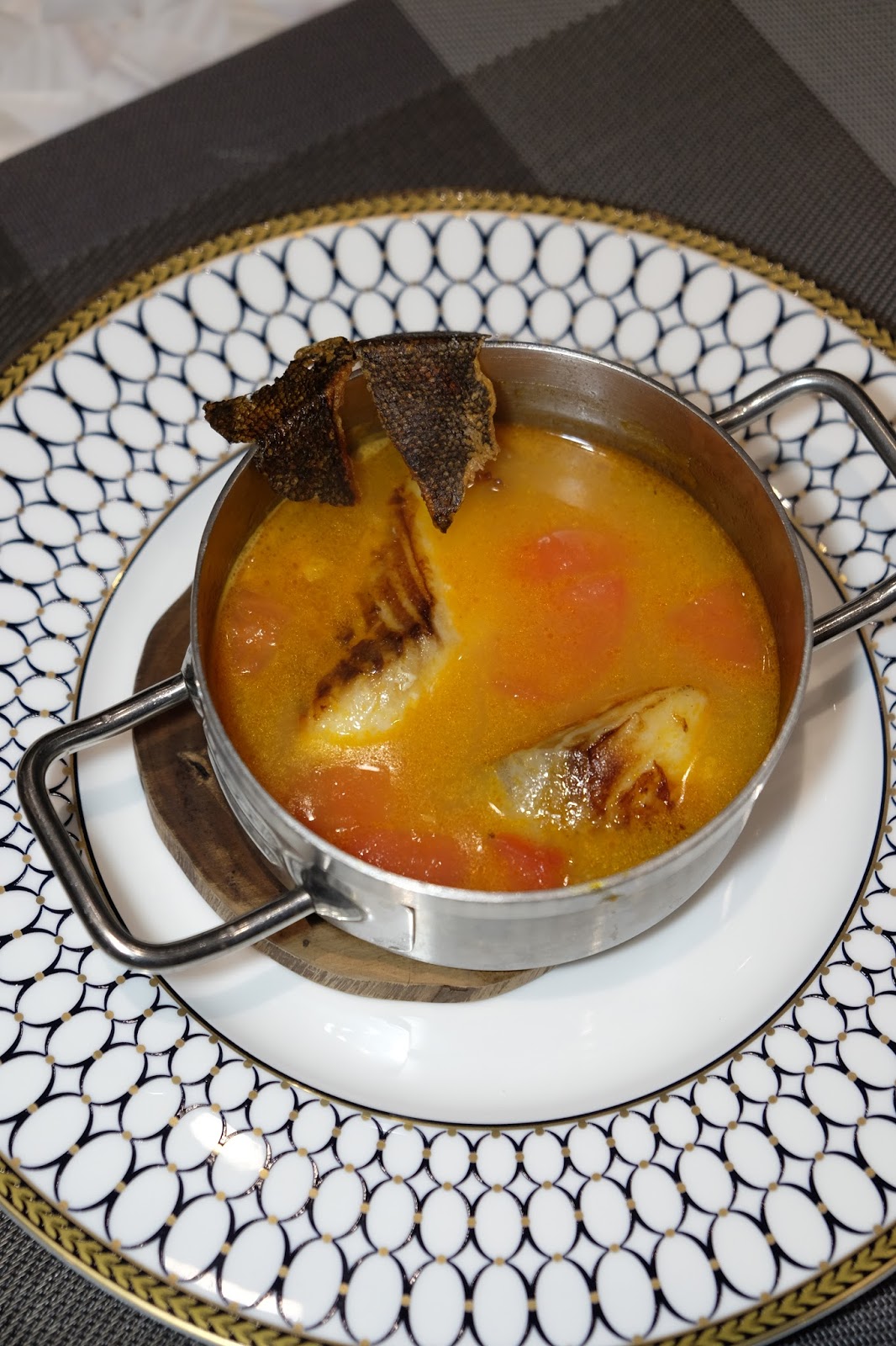 先煎香鱈魚,加入蕃茄熬煮,把鱈魚的鮮味都吊出來,最神來之筆是炸得卜卜脆的魚皮,絕對不能錯過。
