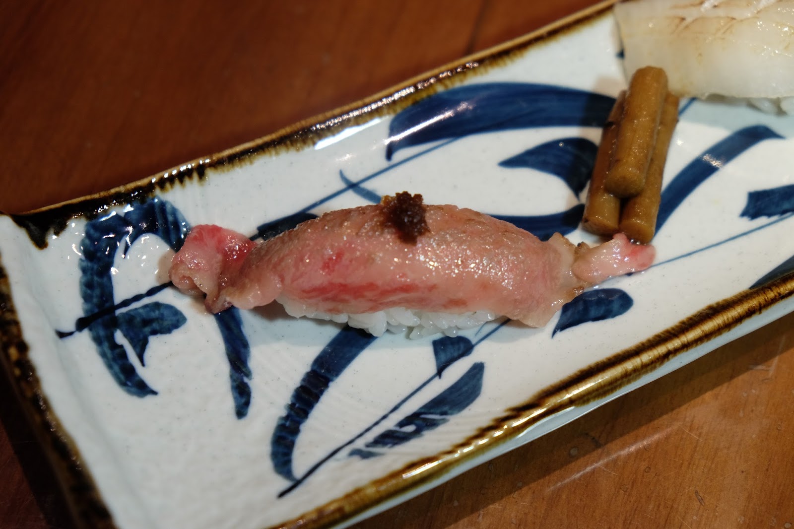 鹿兒島A5和牛壽司經火炙逼出了香氣,食落滿口油香。