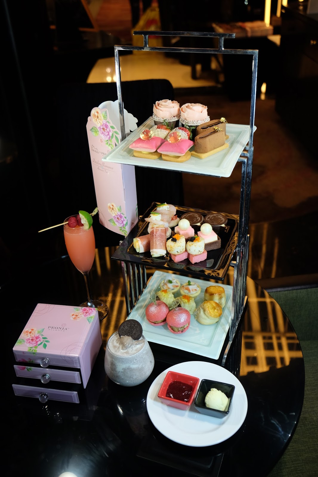 或者可以講,位處旺角火車的帝京酒店的Lion Rock,下午茶的轉換率,是同類酒店中罕見,差不多每隔兩三個月,又會有新意,而今次帝京酒店聯乘鑽飾品牌 Peonia Diamond 彼愛麗鑽石浪漫呈獻,粉紅「鑽」奇下午茶。