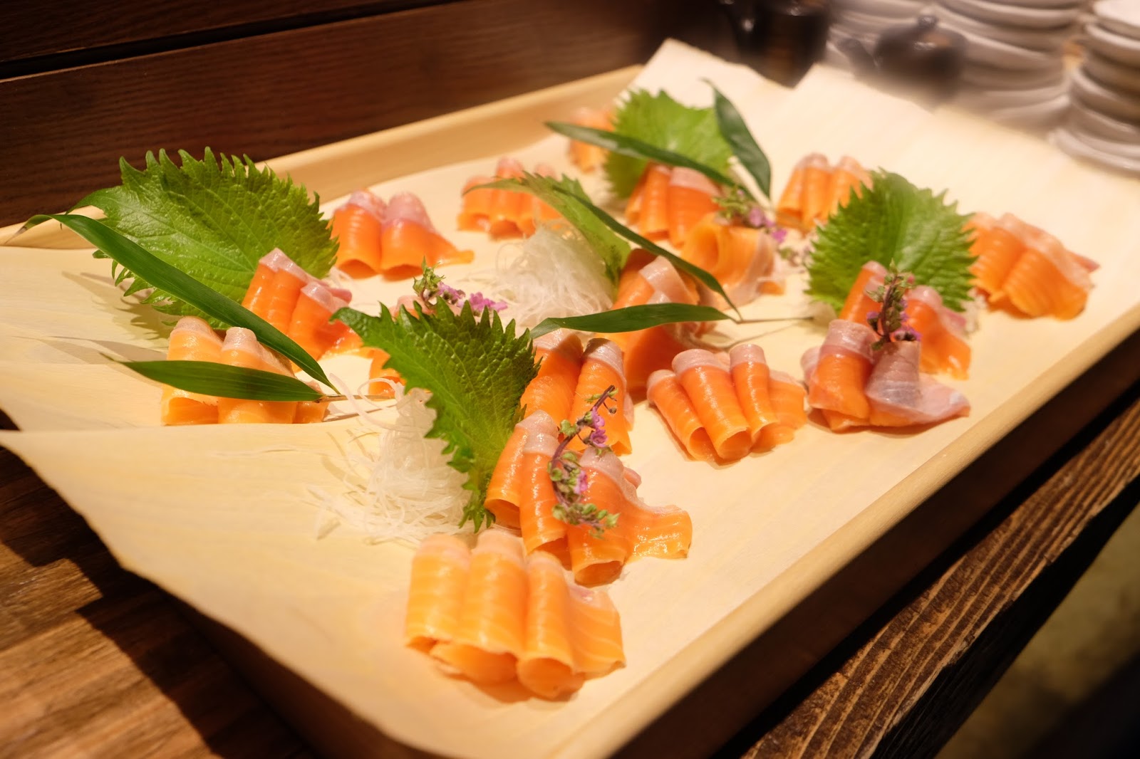 除了大家可以一次過品嚐各種美食之外,現場更有師傅即場切出魚生花,刀功細緻而且乾淨俐落,令人嘆為觀止。