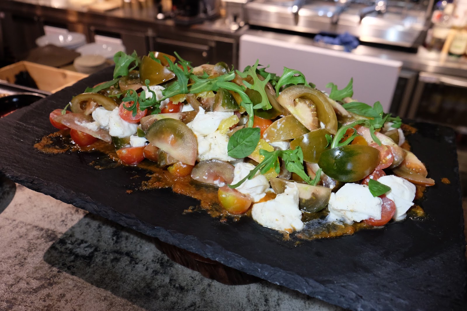 Wedges Salad、田圓沙律與及Tomatoes、Basil and Mozzarella Salad,試了番茄、羅勒及芝士沙律,在清新中帶芝士幽香,表現不俗。