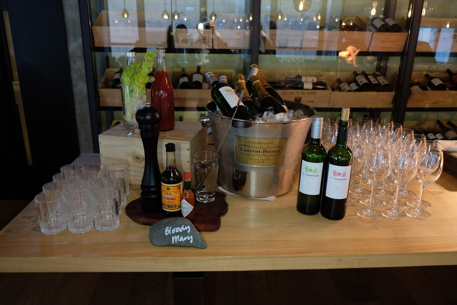 除了橙汁、西柚汁及汽水任飲之外,客人只要另加$280,就可以free flow Laurent-Perrier香檳,或者Bloody Mary,而且客人可自行添加番茄汁及辣汁,酸辣度都是個人口味,真有趣。