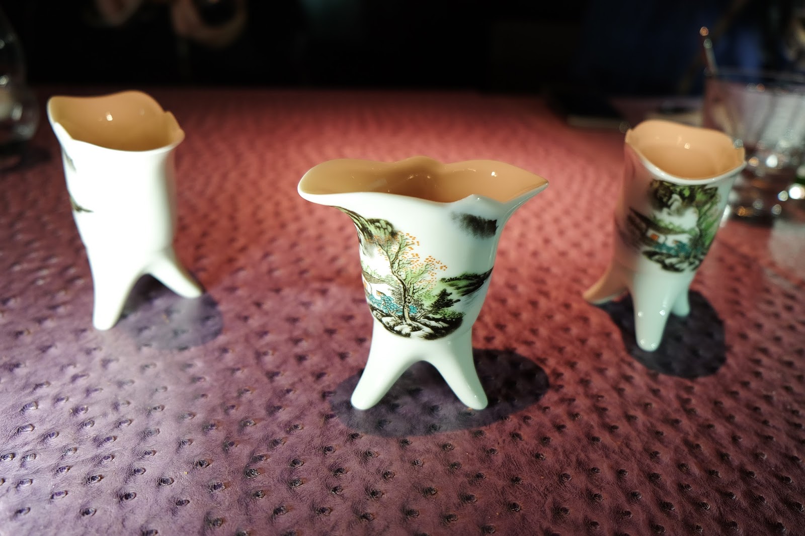 Years Old Moscatel, Douro, Portugal,都忍不住嘩了一聲,但個人覺得焦糖的味道還可以更濃郁一點,但最吸睛的,反而是用上復古版的爵杯,雪白通透的杯體,繪上了中國的山水畫,隱約泛出了粉紅的酒色。