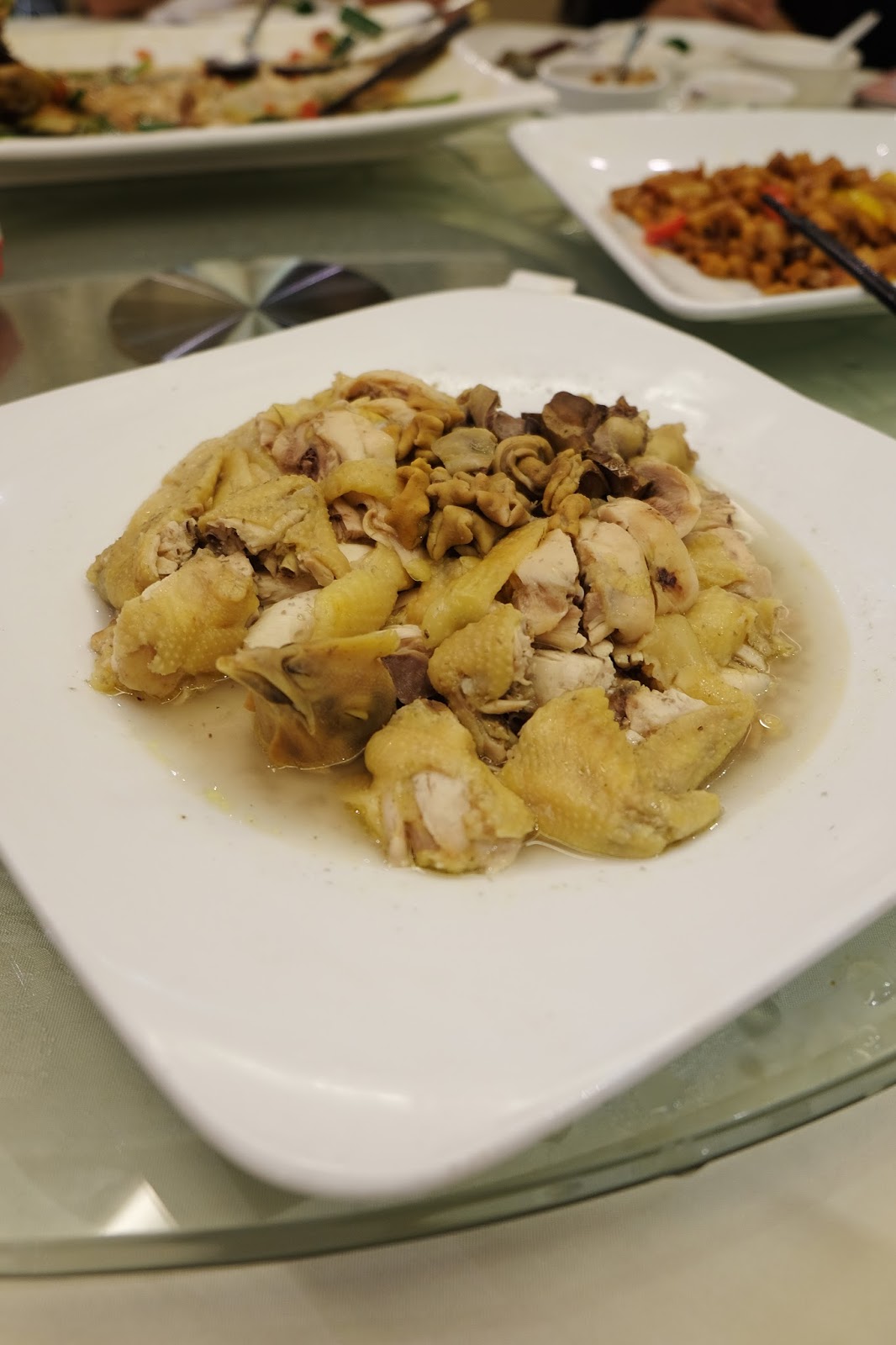 店方用上新鮮雞,所以伴碟有雞什,睇見已經開心,雞腎是爽脆彈牙,雞腸是雞味濃郁,又有嚼口,個人認為實在把咸雞比下去了。