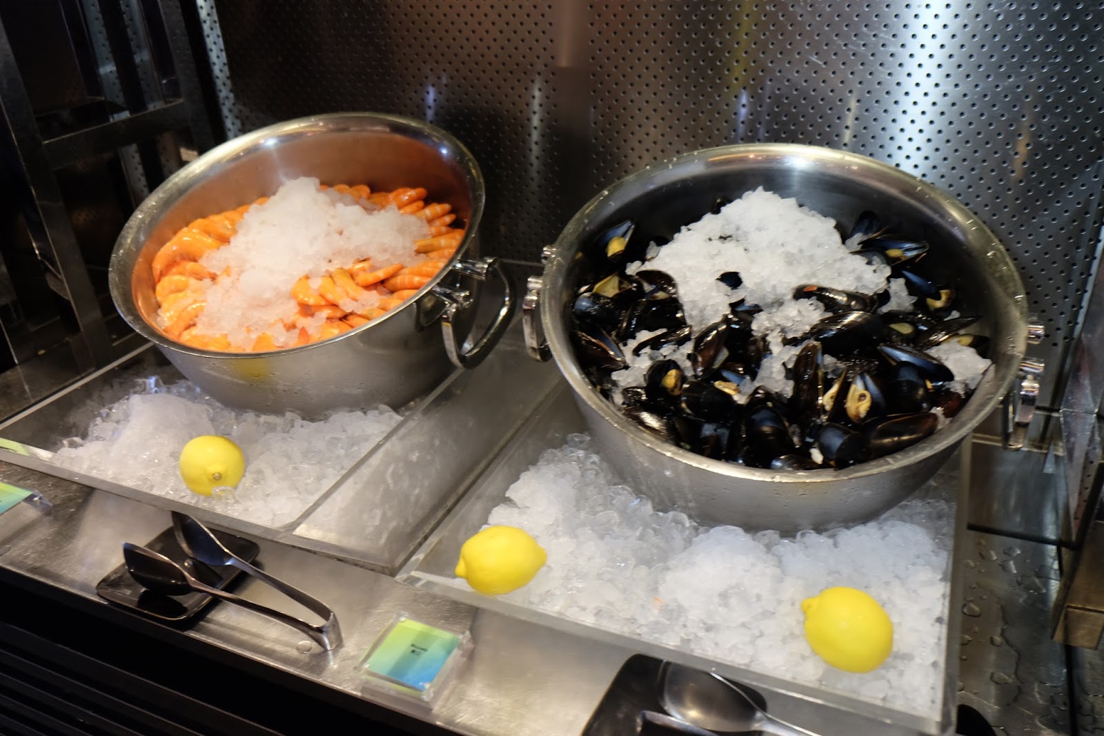 另一邊,擺放了龍蝦鉗、鱈場蟹爪、青口及熟蝦,種類不算特別多,但質素搭夠,尤其是龍蝦鉗褪殼後肉質鮮甜啖啖肉,正。