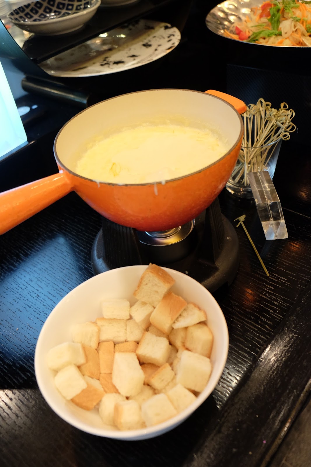 好少機會係自助餐內見到芝士火鍋,難得遇上當然要試下,濃稠的芝士漿緊密地包裹了麵包塊,芝士的香味充斥了口腔,很rich的感覺,加上有Brie Cheese、Gouda Cheese與及Gorgonzola Cheese,對於芝士迷真是一個亮點。