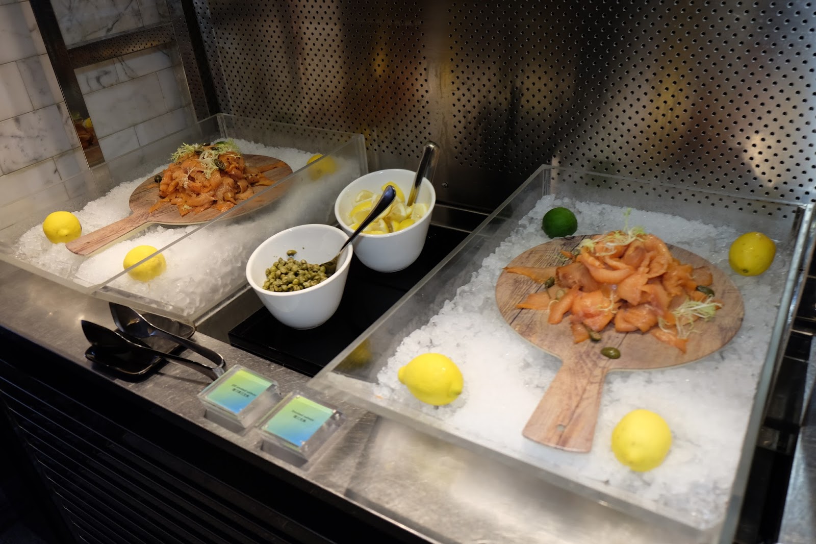 另一邊,擺放了龍蝦鉗、鱈場蟹爪、青口及熟蝦,種類不算特別多,但質素搭夠,尤其是龍蝦鉗褪殼後肉質鮮甜啖啖肉,正。