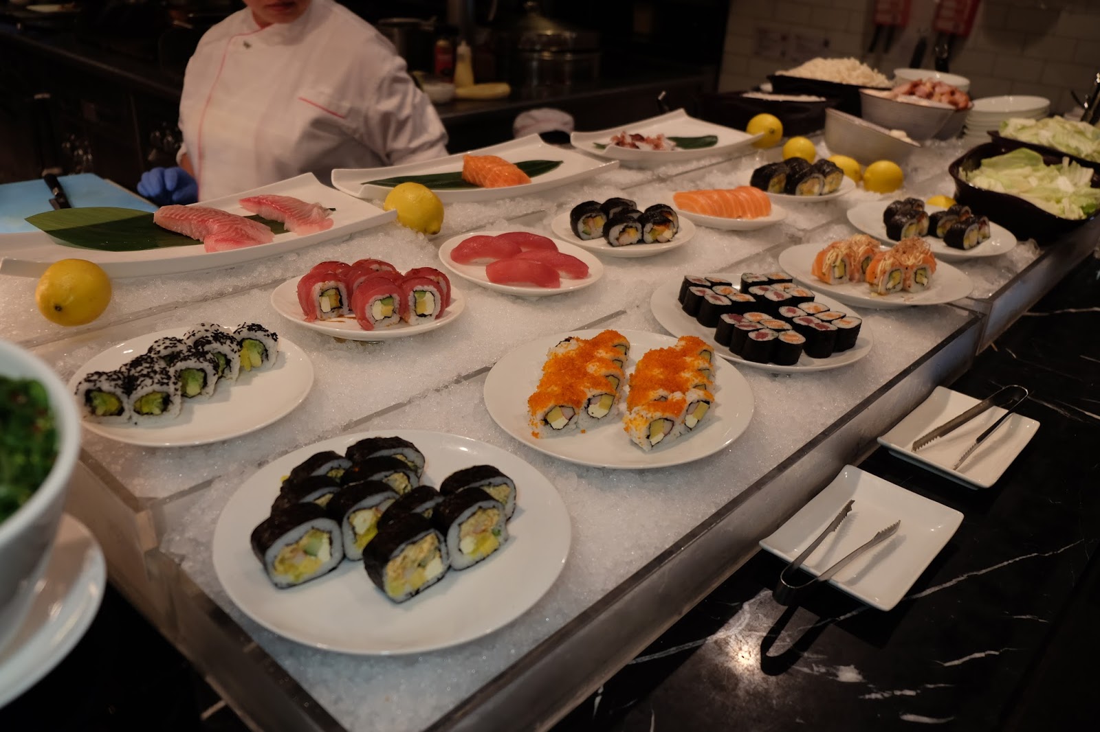 有三文魚、八爪魚及鯛魚,解凍處理得幾好,絲毫沒有雪味,而且肉質有彈性,與及十款壽司,但太飽了,沒試過。