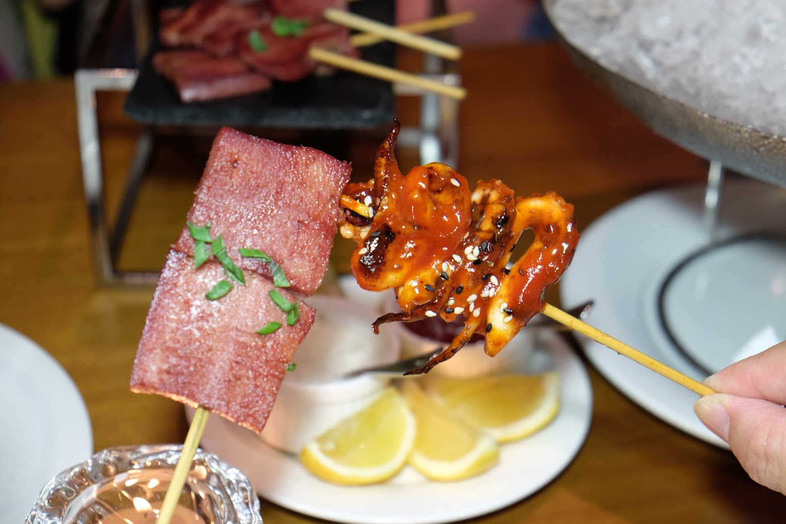 如果嫌單調,大可另點串燒,韓式魷魚鬚 $18/串,而燒牛舌 同樣是$18,有點街頭串燒收費感覺。