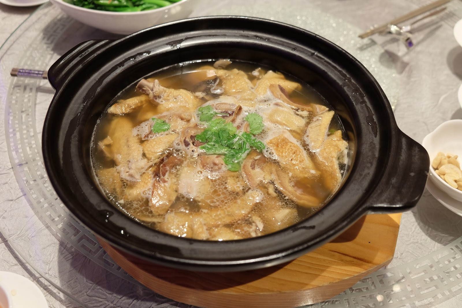 加入陳年花雕燉6小時以上,就連鴨骨都燉至軟稔,一揭開盅蓋,已瀰漫陣陣幽香,色澤透徹,入口原以為藥材味會好強烈,而事實上只感到一陣醇香,過了片刻,身體不期然暖和,果然貨真價實。