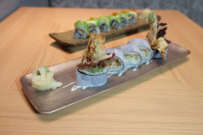 在鰻魚卷放上牛油果片及魚籽,賣相更佳,兩種食材都是軟綿幼滑,相當可口。