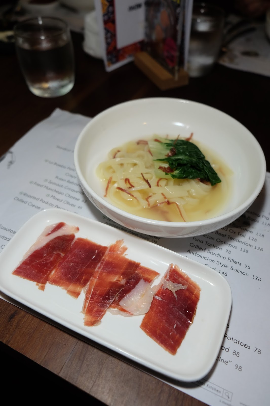 雖說是西班牙菜,大廚出身跟日本有淵源,但menu竟然有烏冬出現,感覺有點兀突,不過烏冬幾滑溜,而且火腿的咸香,跟中式金華火腿相近,其實不錯,而切片火腿另上,令味道更豐富。