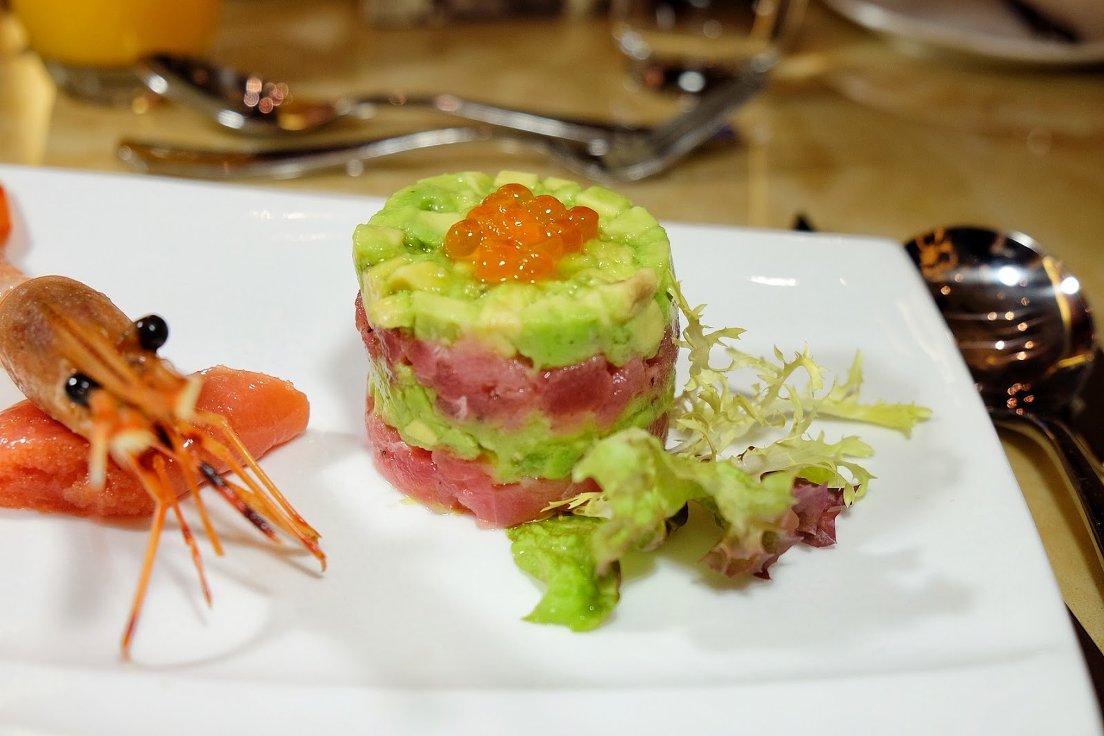 鱈魚籽黃鰭吞拿魚他他配牛油果醋