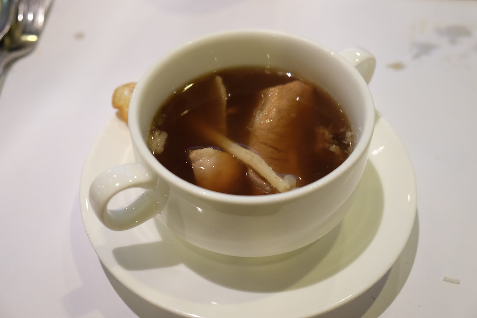 雖然有青豆忌廉湯及肉骨茶,但似乎肉骨茶較受歡迎,舀了一碗,色澤深黝,藥材味重,是馬來西亞的風味,如果可以再夠火喉一點就更好。