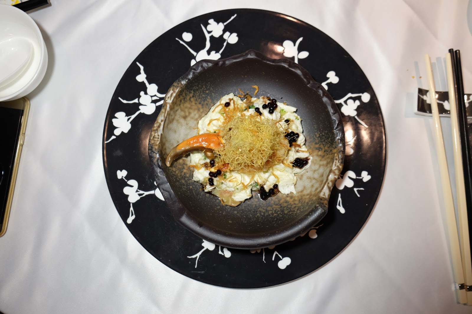 墊底是賽螃蟹,蛋白幼滑富蛋香,放上原隻蟹蚶就倍覺矜貴,加入十零粒醋珠,更是神來之筆,多添了一份芳香,亦平衡了油膩感。