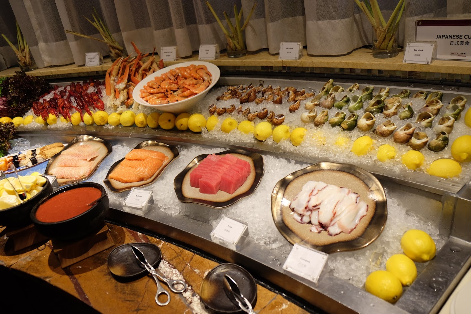 另外,加拿大青口 、熟蜆、藍貝、 紅龍蝦仔、鱈場蟹腳、凍蝦、翡翠螺及東風螺,款式在同級酒店中,實在勝一籌。