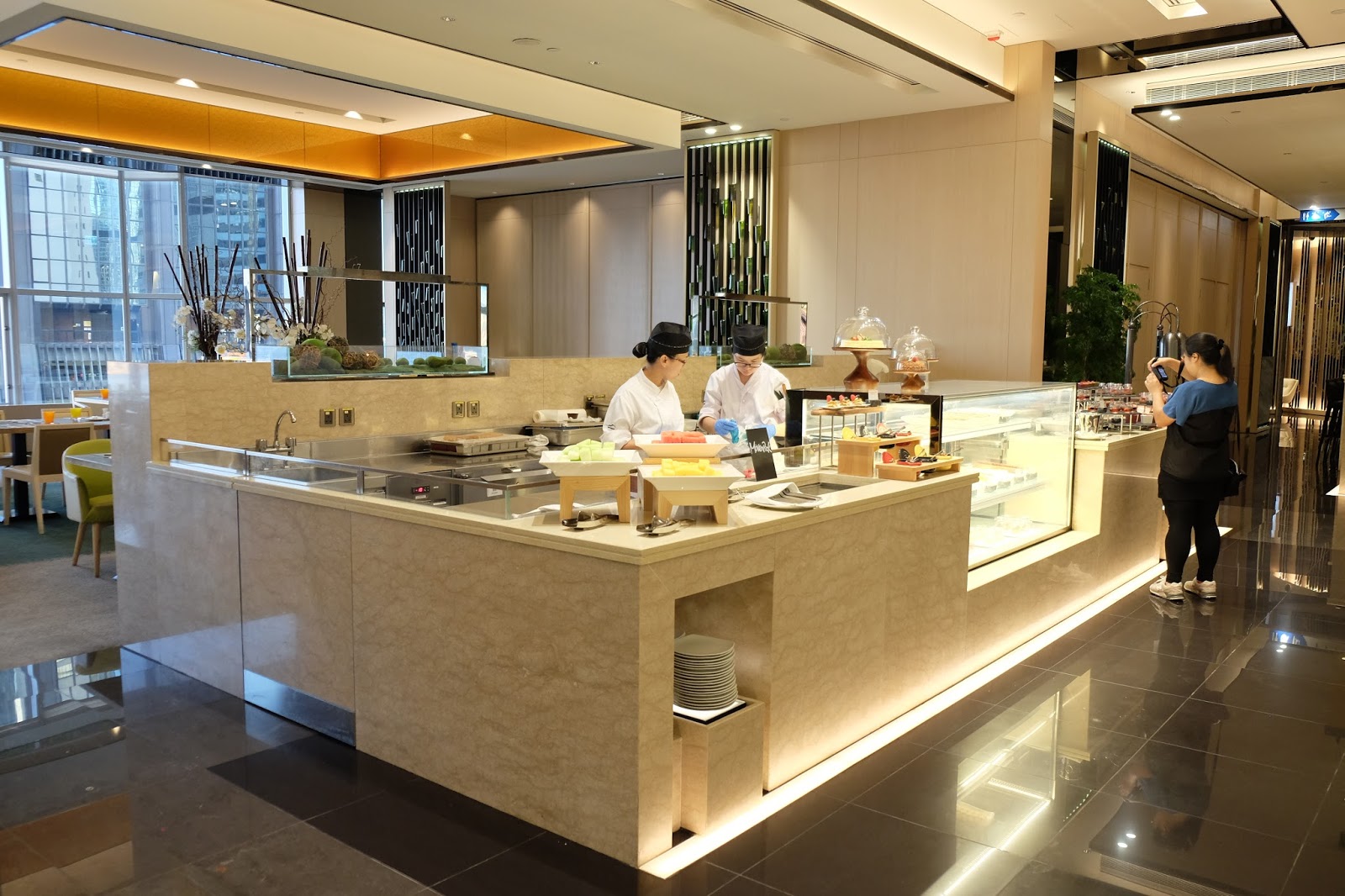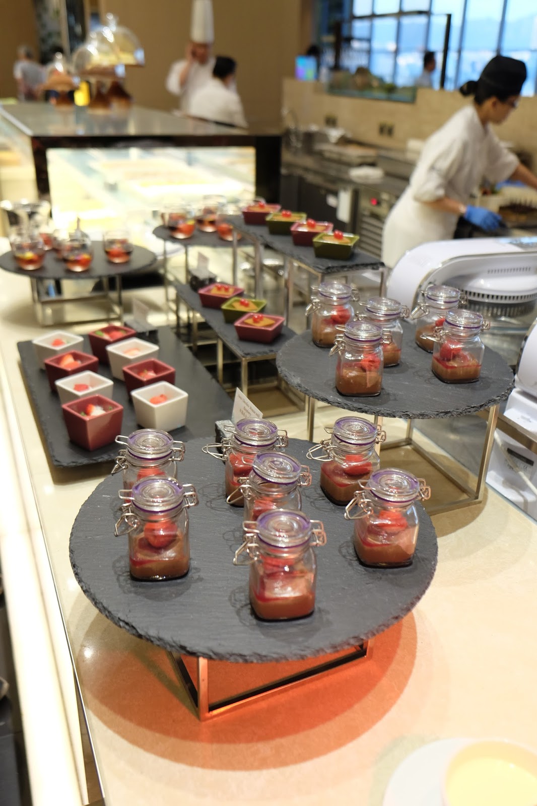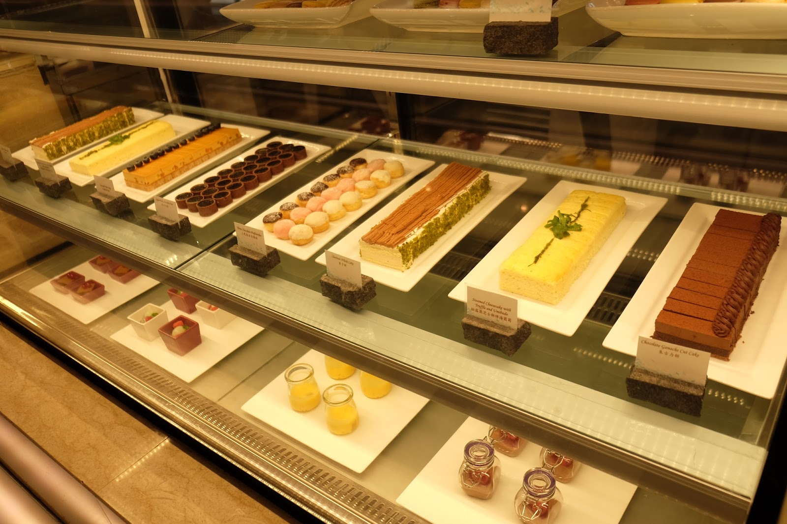 望望甜品櫃,仲有Macaroon、迷你日式芝士撻、梳乎裡、紅莓朱古力奶凍、紅棗糕、龍眼火龍果伴冰菜、花香鮮果大菜糕、楊枝甘露、朱古力餅、松露蒸芝士餅伴海葡萄、栗子餅、三色朱古力蛋球、朱古力撻及焦糖梨蛋糕。