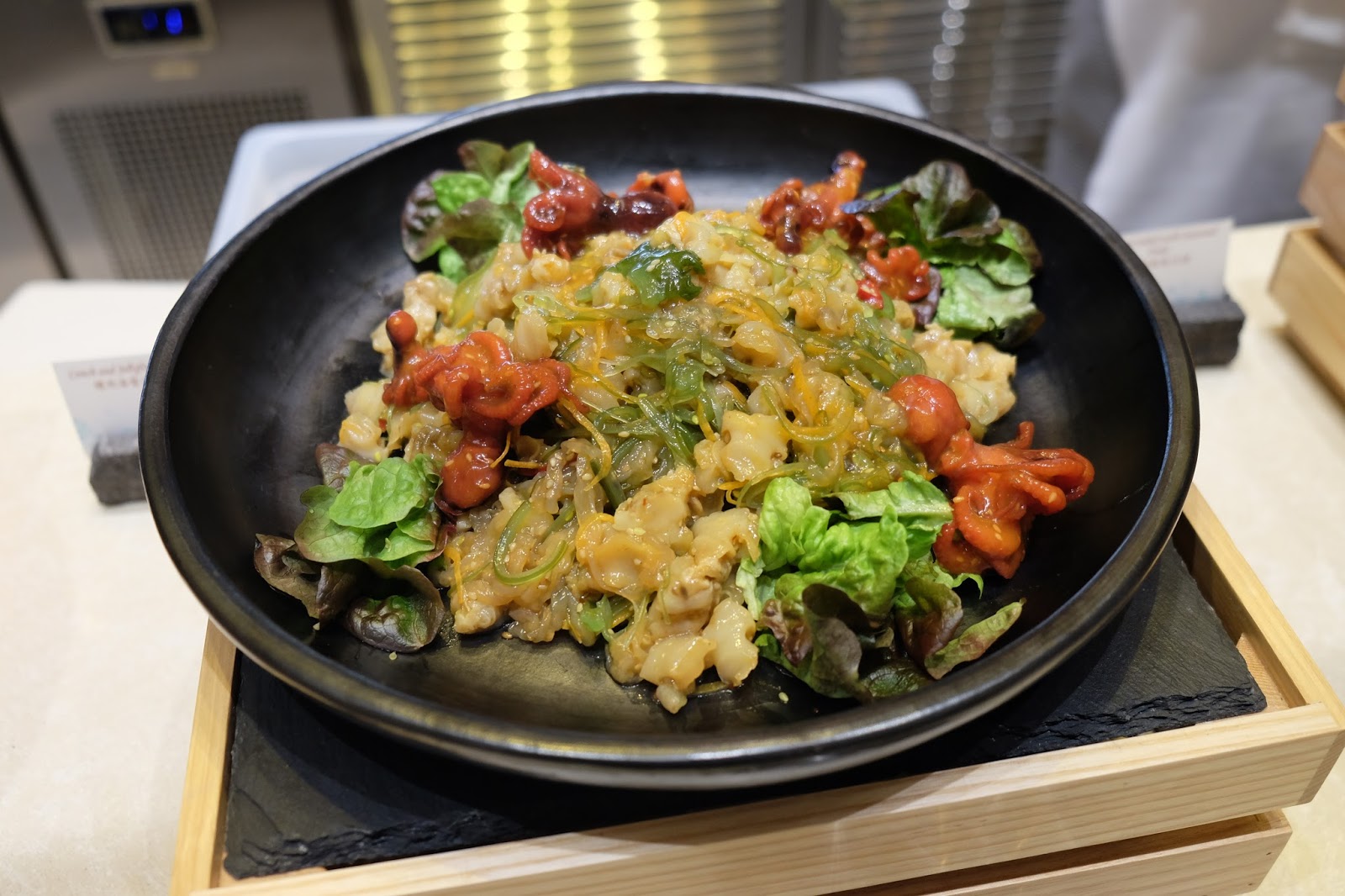 起初望見冰鎮的海鮮併盤時,都有點奇怪,以為係刺身山,原來鱈魚、三文魚及龍脷柳,都是即煎,吃落帶少許焦香。