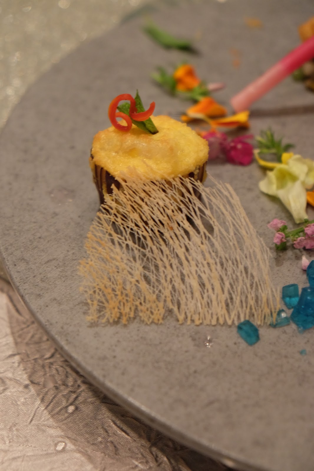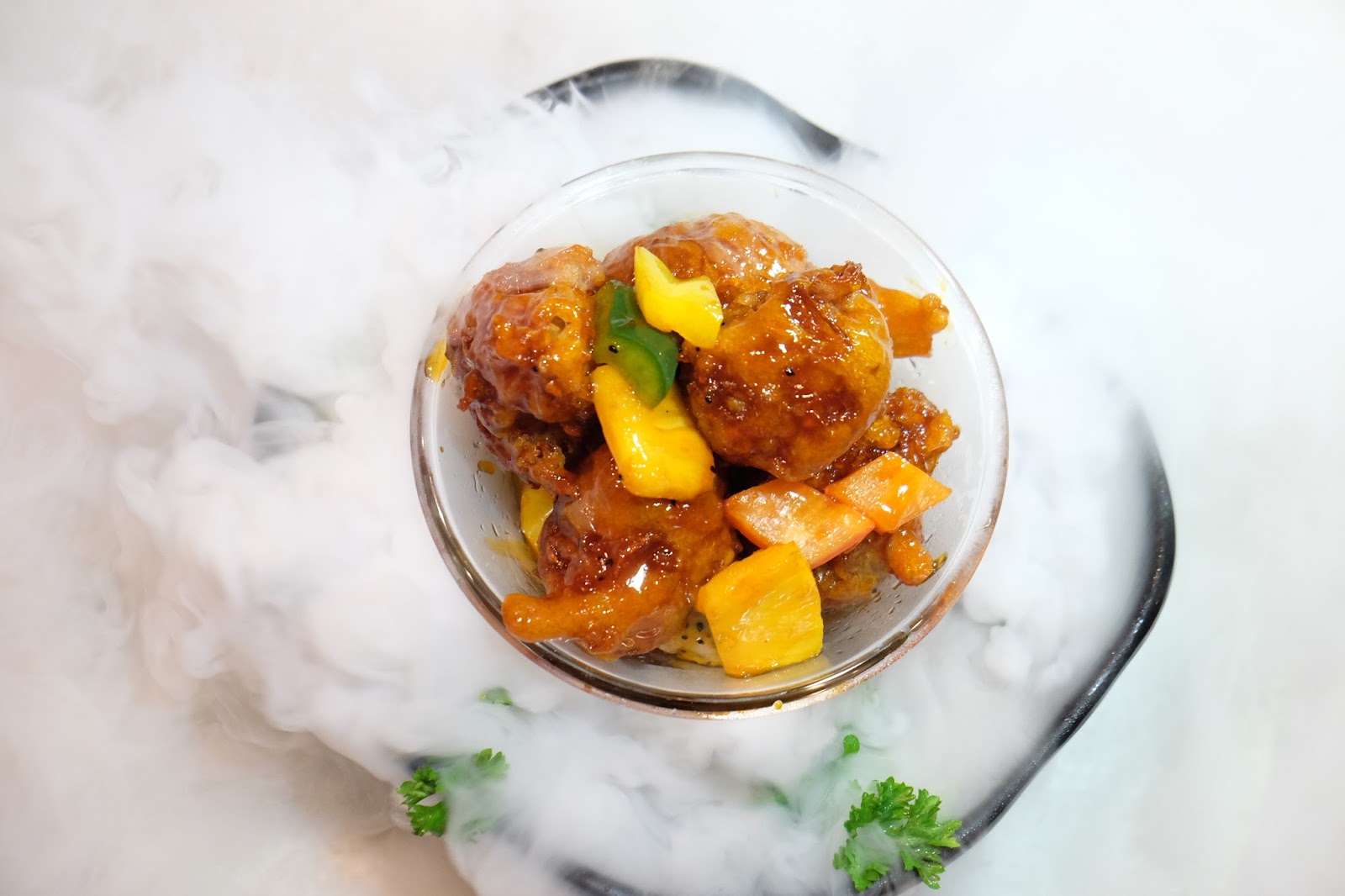 感覺上是咕嚕肉的矜貴版,乾冰營造出仙氣飄渺的效果,咕嚕肉外層帶點微脆,甜酸汁調較得啱啱好,吃起來不會太膩。